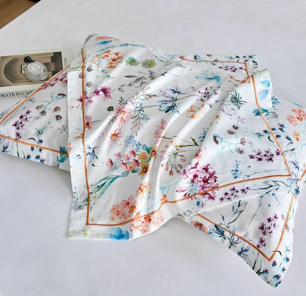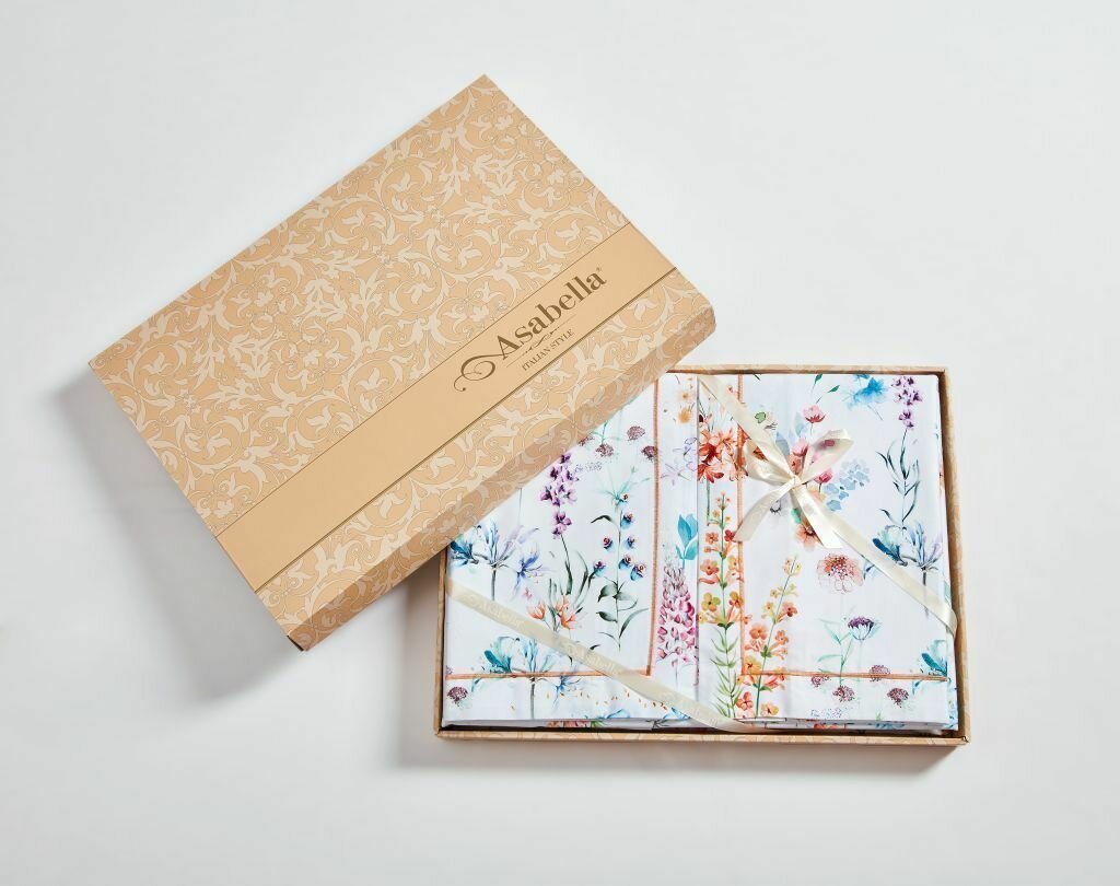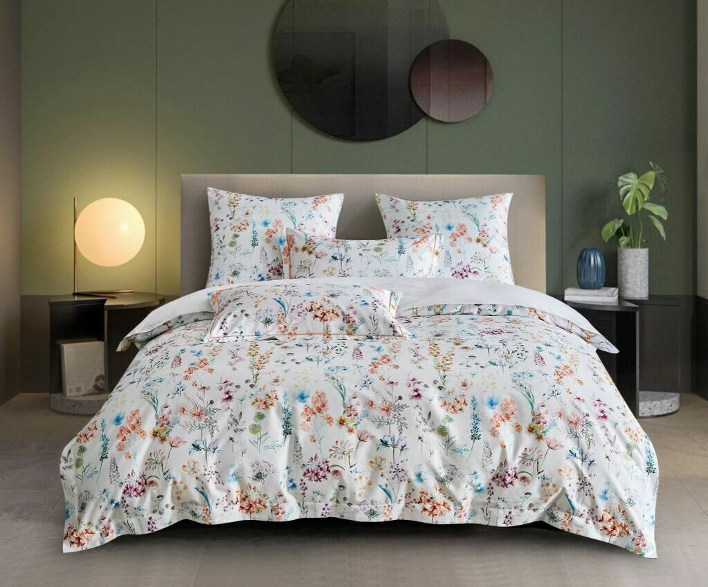 Комплект постельного белья 15-спальный Anabella Asabella цветы на белом простыня белая (2057-4S) (размер: 1.5-спальный)