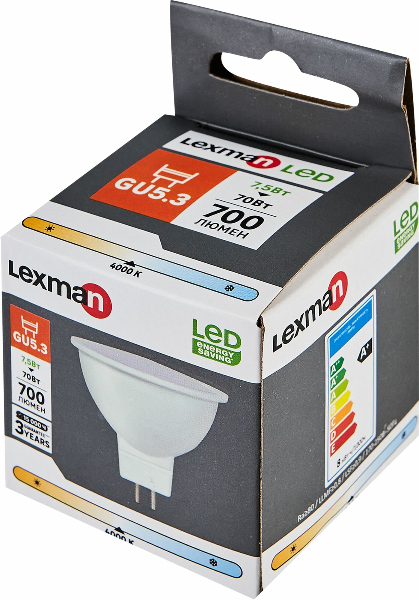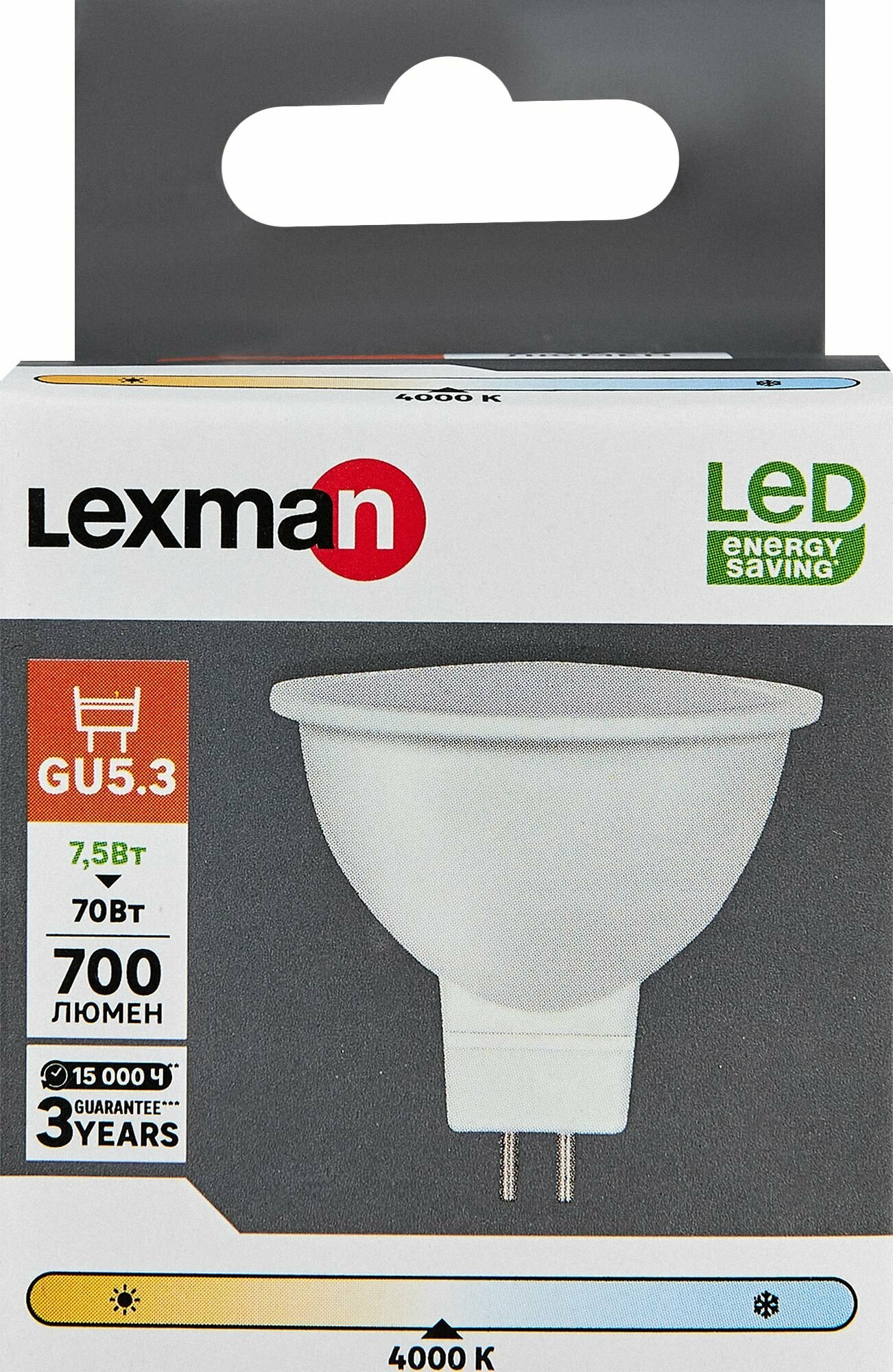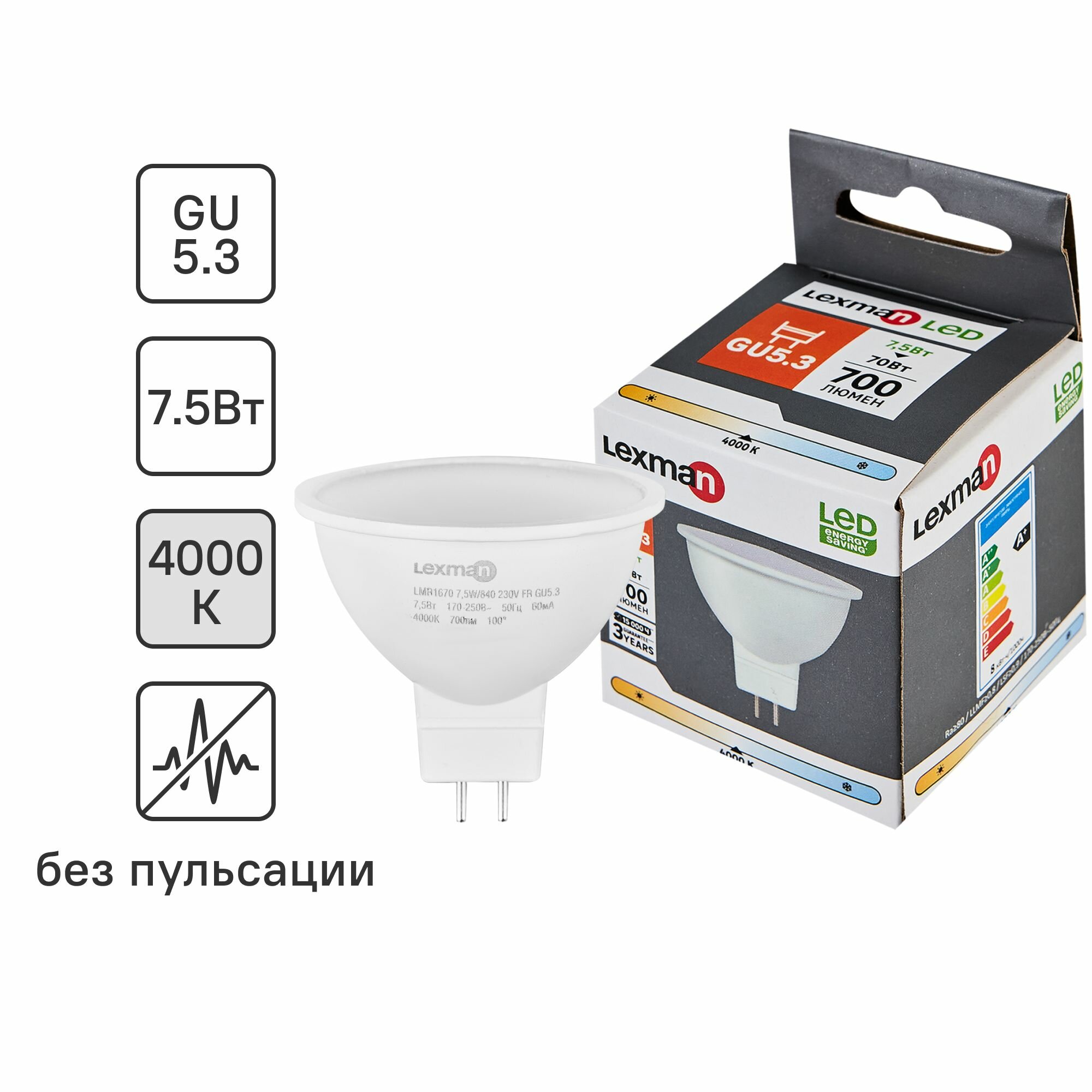 Лампа светодиодная Lexman Frosted GU5.3 175-250 В 7.5 Вт спот 700 лм нейтральный белый цвет света
