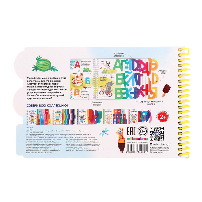 Книга «Азбука» из серии «Первые шаги» знакомит ребёнка с алфавитом и предоставляет простой и понятный материал для обучения чтению. Внутри 12 страниц с красочными иллюстрациями и фигурной вырубкой по краю. Забавные простые стишки и красочные иллюстрации с подписями помогут ребёнку выучить буквы и прочесть свои первые слова, а странички с фигурным краем дадут возможность потренировать мелкую моторику и сделают занятия интересными и увлекательными. Серия «Первые шаги» — лучший друг вашего малыша!