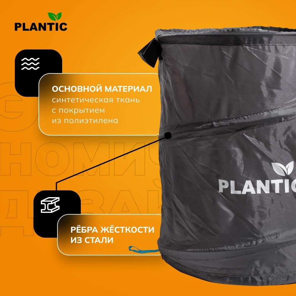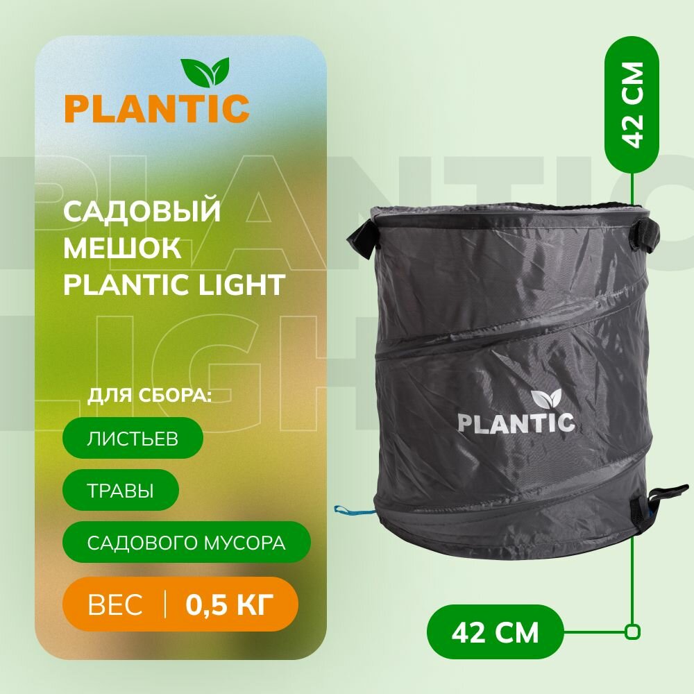 **Мешок садовый Plantic Light** — многоразовый аксессуар, предназначенный для сбора листвы, травы, сорняков, небольших веток на участке. Модель выполнена из синтетического волокна, устойчивого к воздействию влаги, плесени и разрывам. Жесткая конструкция позволяет быстро сбрасывать садовый мусор без необходимости каждый раз поднимать и разворачивать мешок.