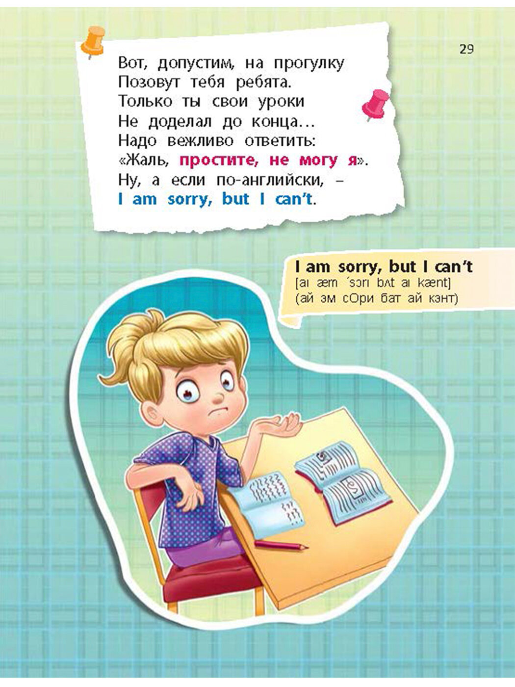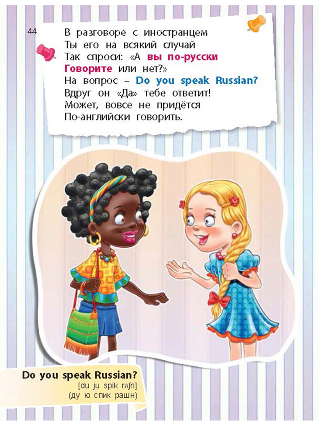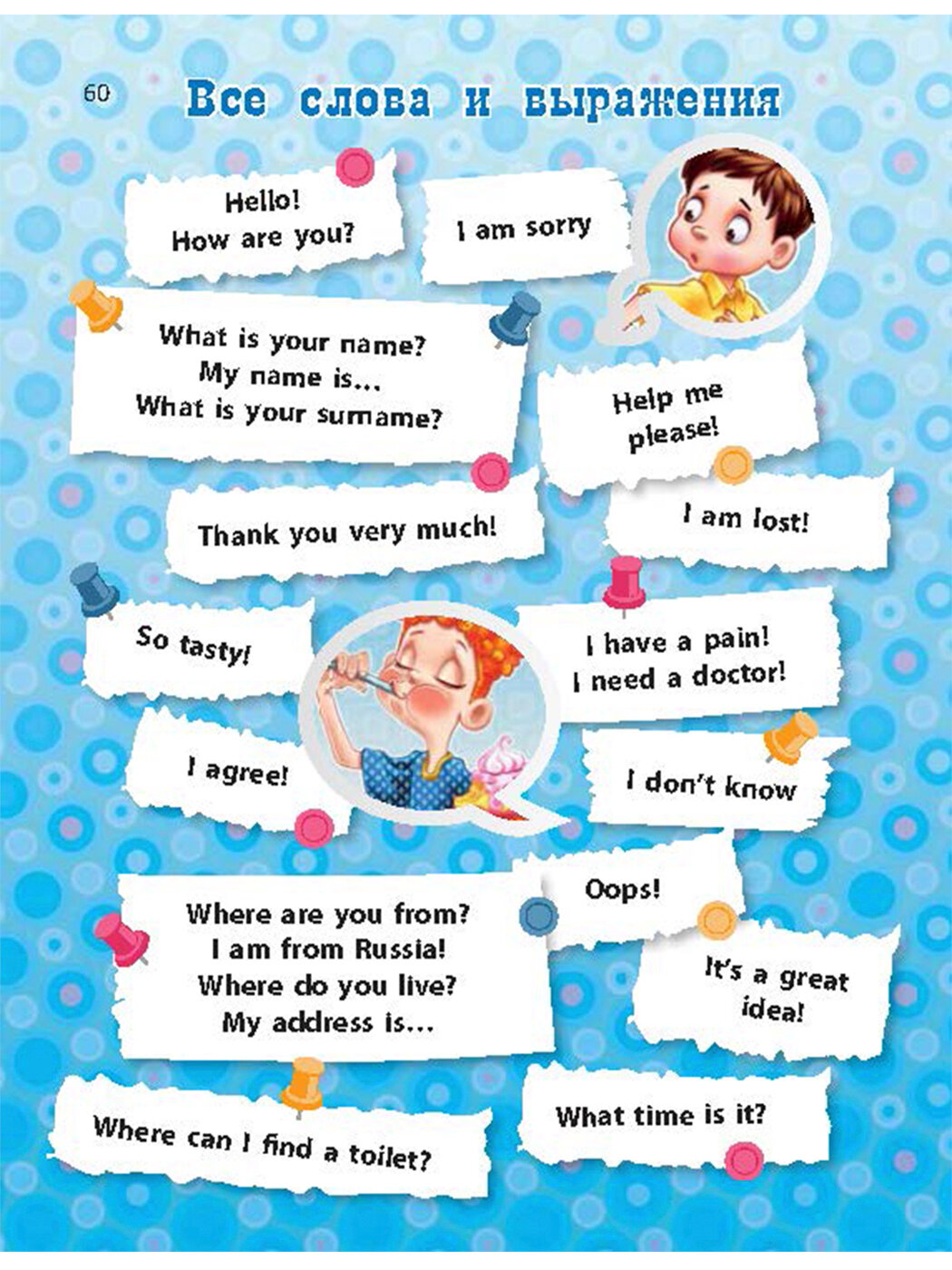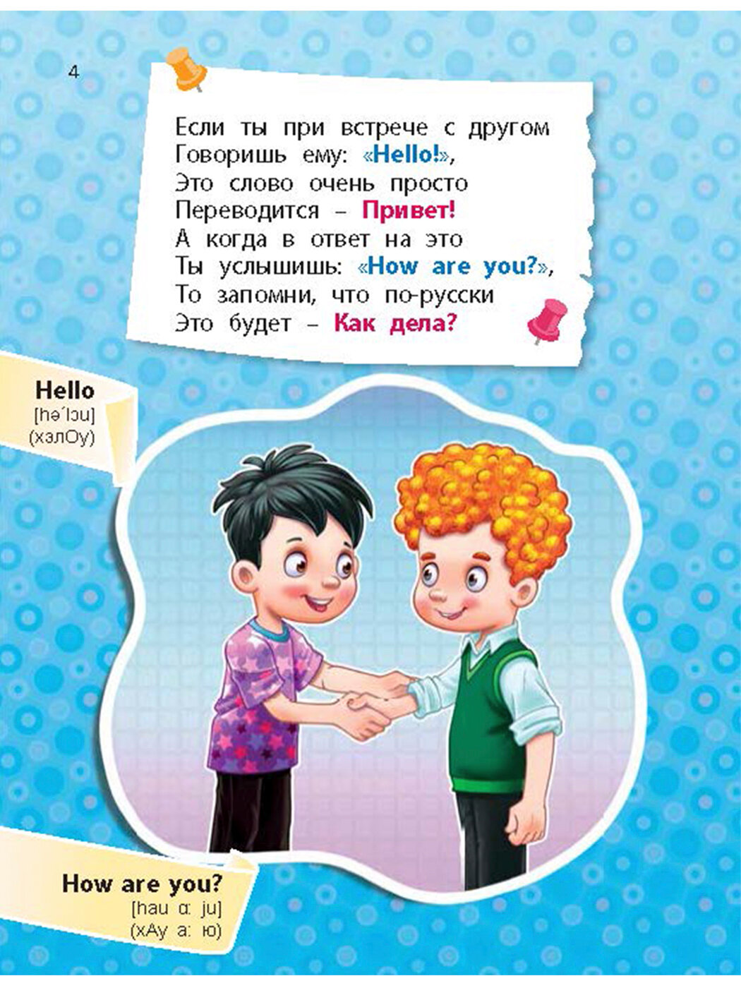 В книге собраны наиболее распространенные английские выражения, используемые в повседневном общении. Чтобы ребенку было проще их запомнить, они даются в ритмичной стихотворной форме. Это пособие поможет малышу сделать первые шаги в разговорном английском. В помощь родителям для каждого английского выражения приведены две транскрипции - классическая (написанная с помощью международных знаков) и практическая (написанная с помощью русских букв, как это принято в разговорниках).Книга является продолжением аналогичных веселых пособий "Как “сосиски” по-английски?" и "Как “ириски” по-английски?". Все три книги созданы на основе рабочих материалов, которые автор много лет успешно использовала на занятиях английским языком с дошкольниками.