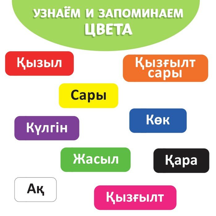 Обучающая книга Учим цвета, казахский язык, 20 стр.С обучающей книгой на казахском языке из серии «Первые знания» ребёнок в лёгкой игровой форме познакомится с цветами и разными предметами и явлениями, с которыми он сталкивается каждый день.Чтобы занятия проходили продуктивно, проводите их, когда у вас и ребёнка хорошее настроение и вы готовы к совместному творчеству.Особенности книгиИздание небольшого размера удобно брать с собой и заниматься дома.В книге 20 страниц.Яркие цвета и забавные герои привлекут внимание и заинтересуют малыша.Книги подходят для занятий с детьми старше 3 лет.В серии книг на казахском языке «Первые знания» представлены и другие книги — соберите их все.
