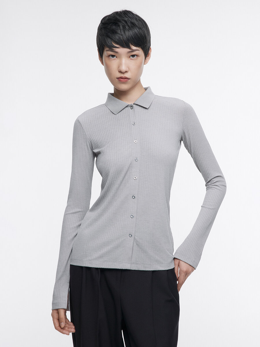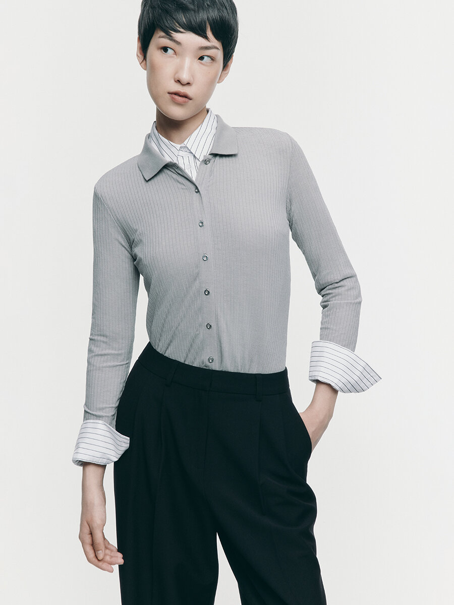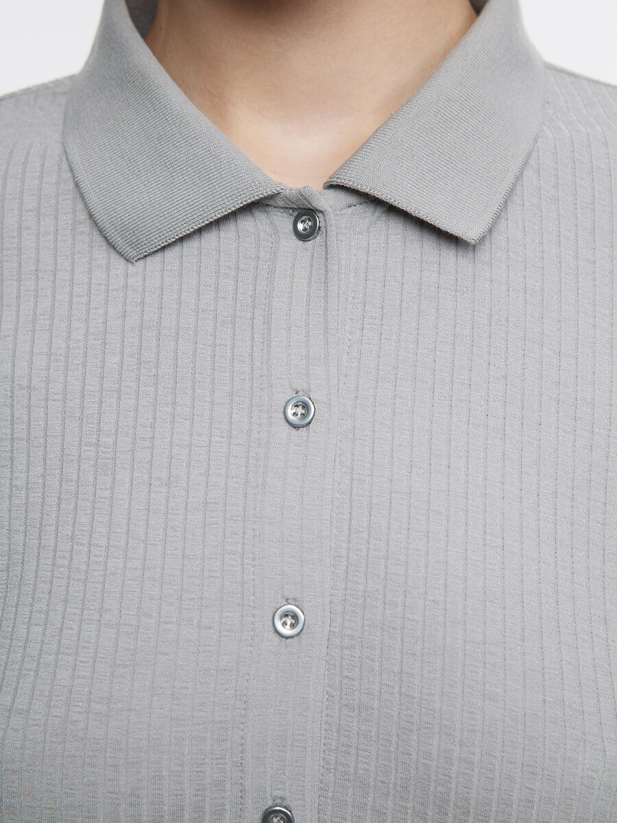 - Женская блузка-рубашка облегающего кроя из легкой, мягкой и приятной к телу ткани с фактурой в крупный рубчик