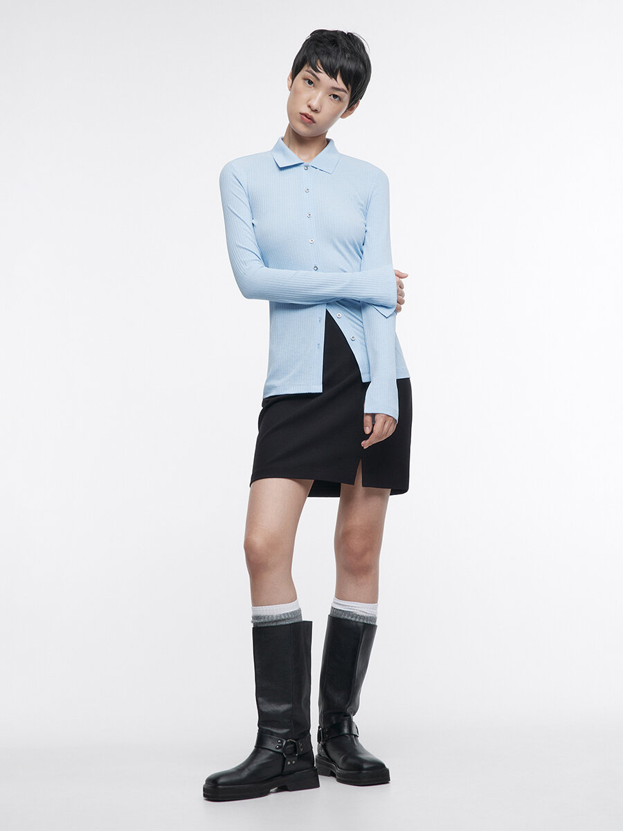 - Однотонная блузка без принта. Облегающая рубашка с длинными рукавами внесет стильное и приятное разнообразие в твои строгие аутфиты в школу, университет, офис или просто на каждый день. Сочетай ее с короткими юбками-карандаш или брюками-палаццо, создавая образы в стиле "офисной сирены". Комбинируй рубашку без принта с комфортными джинсами, и у тебя получится образ в стиле городского шика. Конечно же, блузка без принта будет отлично смотреться и в кэжуал-луках. Носи ее отдельно или в составе многослойных образов. Заверши образ удобной обувью и любимыми аксессуарами