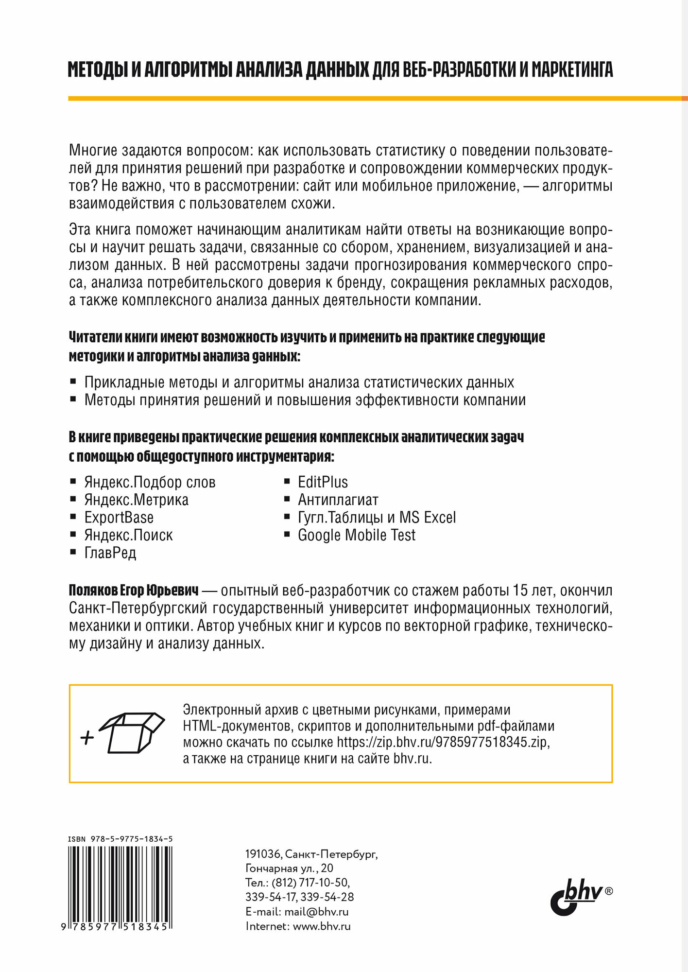 Методы и алгоритмы анализа данных для веб-разработки и маркетинга (Е. Ю. Поляков); БХВ-Петербург, 2024