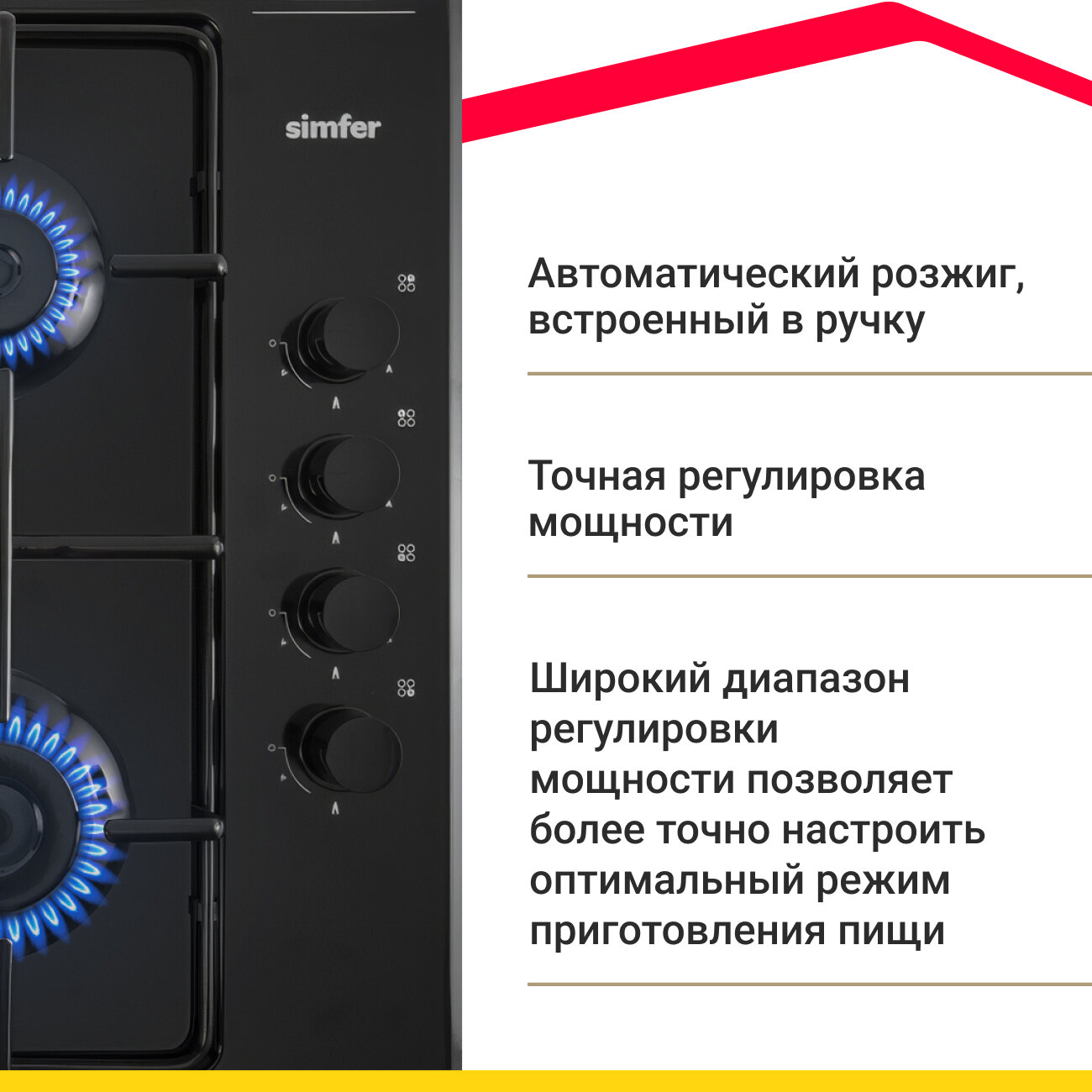 Газовая варочная панель Simfer H60Q40B440 серия Comfort с автоподжигом черная