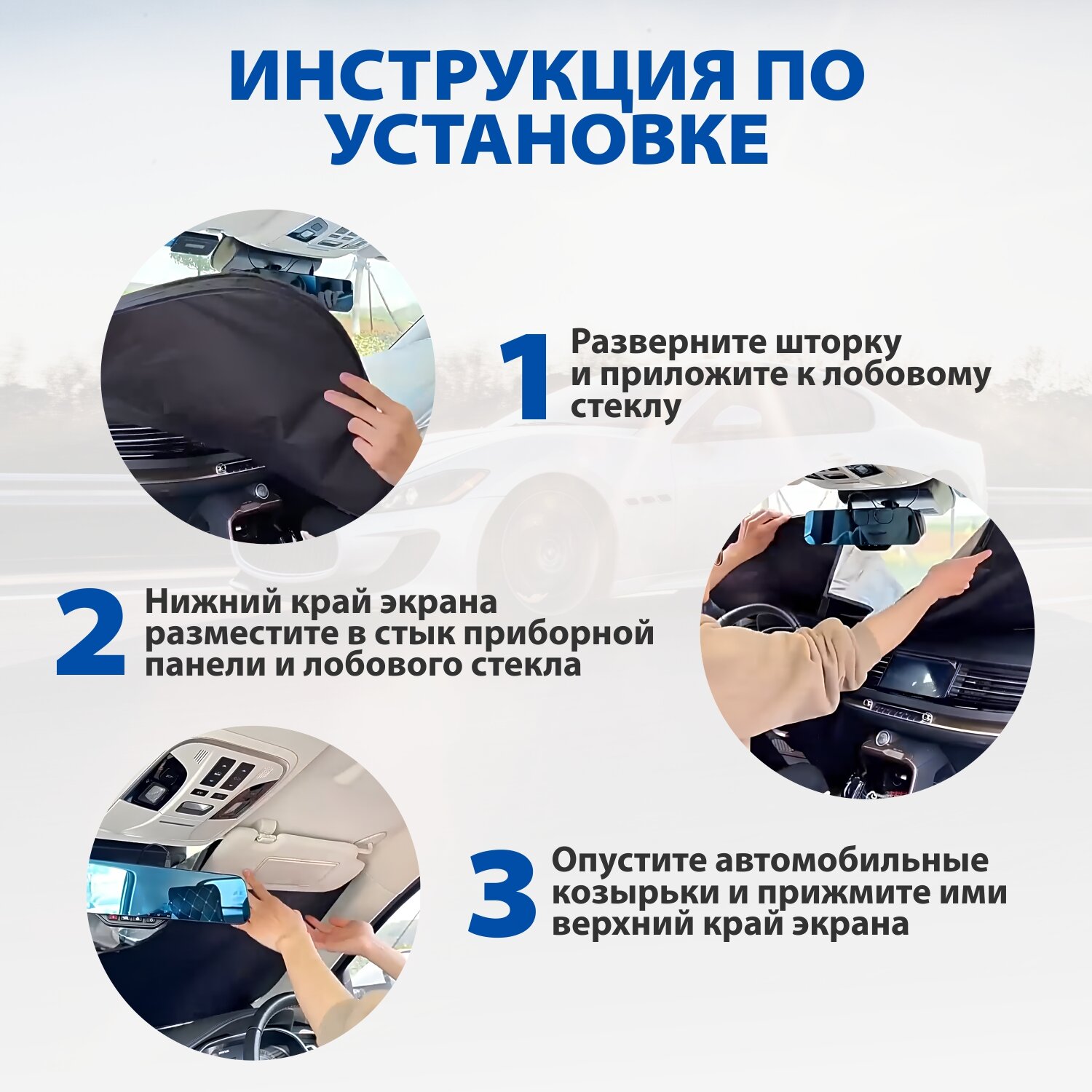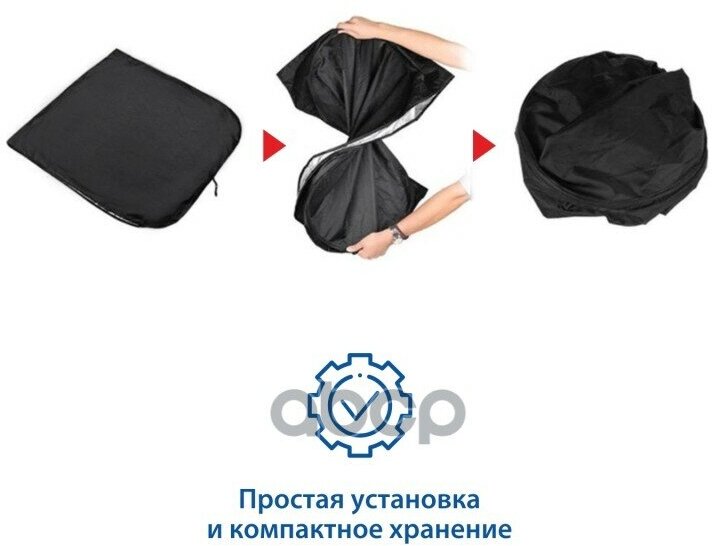 Солнцезащитную шторку Goodyear легко установить - нижняя часть закрепляется на панели, а верхняя прижимается козырьками автомобиля. Благодаря упругому металлическому каркасу по периметру экрана шторка не сползает и надежно фиксируется на лобовом стекле.