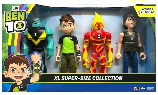 Уникальный набор из самых популярных персонажей мультсериала Бен 10 в максимальном размере XL 28 см высота игрушки. В наборе: Человек-огонь, Бен 10, Алмаз, Кевин 11.