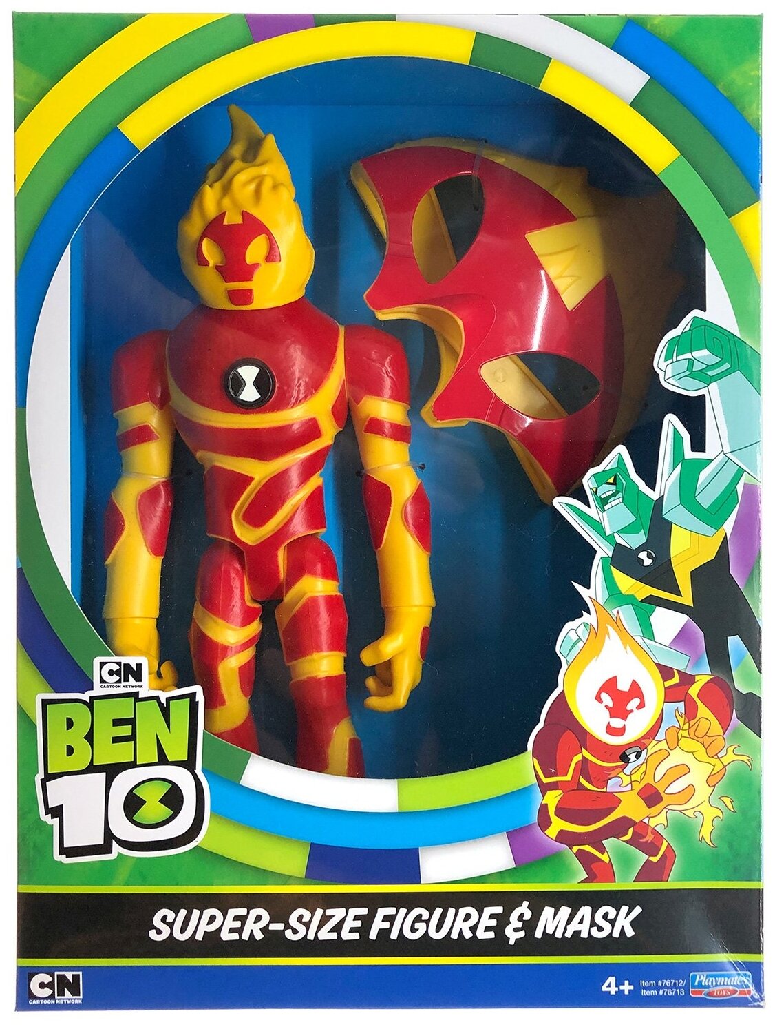 Любимые игрушки Бен 10 в одном наборе! Большая пластиковая фигурка размера XL Человека-огня по мотивам мультсериала Бен 10, а также маска для ребенка. Высота фигурки - 28 см.