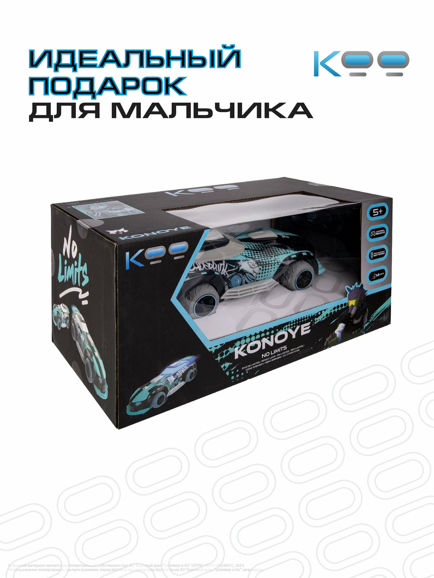 Размер машинки: 24х11х7,5 см. Размер упаковки: 35 х19,5х17 см. Частота дистанционного управления - 2,4 GHz. Мощная аккумуляторная батарея 3,7V 500mAh Li-ion. Игровое время - 15 минут. Скорость машинки – 14 км/ч. Беспроводной пульт поставляется в наборе, для него необходимы 3 батарейки 1,5V AAA (не входят в комплект). Включение и выключение подсветки корпуса, включение режима езды в хаотичном направлении, движение вперёд/назад, движение влево/вправо. В комплекте с машинкой: универсальный пульт дистанционного управления, USB-кабель, аккумулятор, отвёртка, инструкция.Гоночная машина на радиоуправлении Каноэ от бренда KOO - это игрушка, которая порадует как мальчиков и девочек от 5 лет, так и взрослых. Эта игрушечная машинка на пульте управления – идеальный вариант для активного времяпрепровождения. Яркий дизайн в стиле аниме, оригинальные герои и модные автомобильные аксессуары придают игрушечной машинке Каноэ особую уникальность!Радиоуправляемая машинка Каноэ оснащена аккумулятором, который заряжается от USB-кабеля, что позволяет ей развивать неуловимую скорость до 14 км/ч. Съёмное антикрыло увеличивает маневренность игрушки и даёт возможность совершать удивительные гоночные трюки!Длительность игрового времени машины с пультом управления составляет 15 минут, что позволяет насладиться игрой надолго.Яркая подсветка корпуса и мощные шины для любого покрытия создают особую атмосферу гоночного заезда и позволяют справляться с крутыми поворотами при езде по песку, асфальту, полу и другим поверхностям.Игрушка на пульте управления Каноэ - выбор для самых смелых, тех, кто хочет насладиться настоящими скоростными гонками и получить незабываемые впечатления от игры! Сделайте уникальный подарок для своих близких на любой праздник: День Рождения, именины, 8 марта, 23 февраля или Новый Год. Погрузитесь в мир незабываемых гонок и эксклюзивных спортивных машин вместе с другими моделями игрушек на пульте управления КОО: Катаи, Кохана, Каору и др.