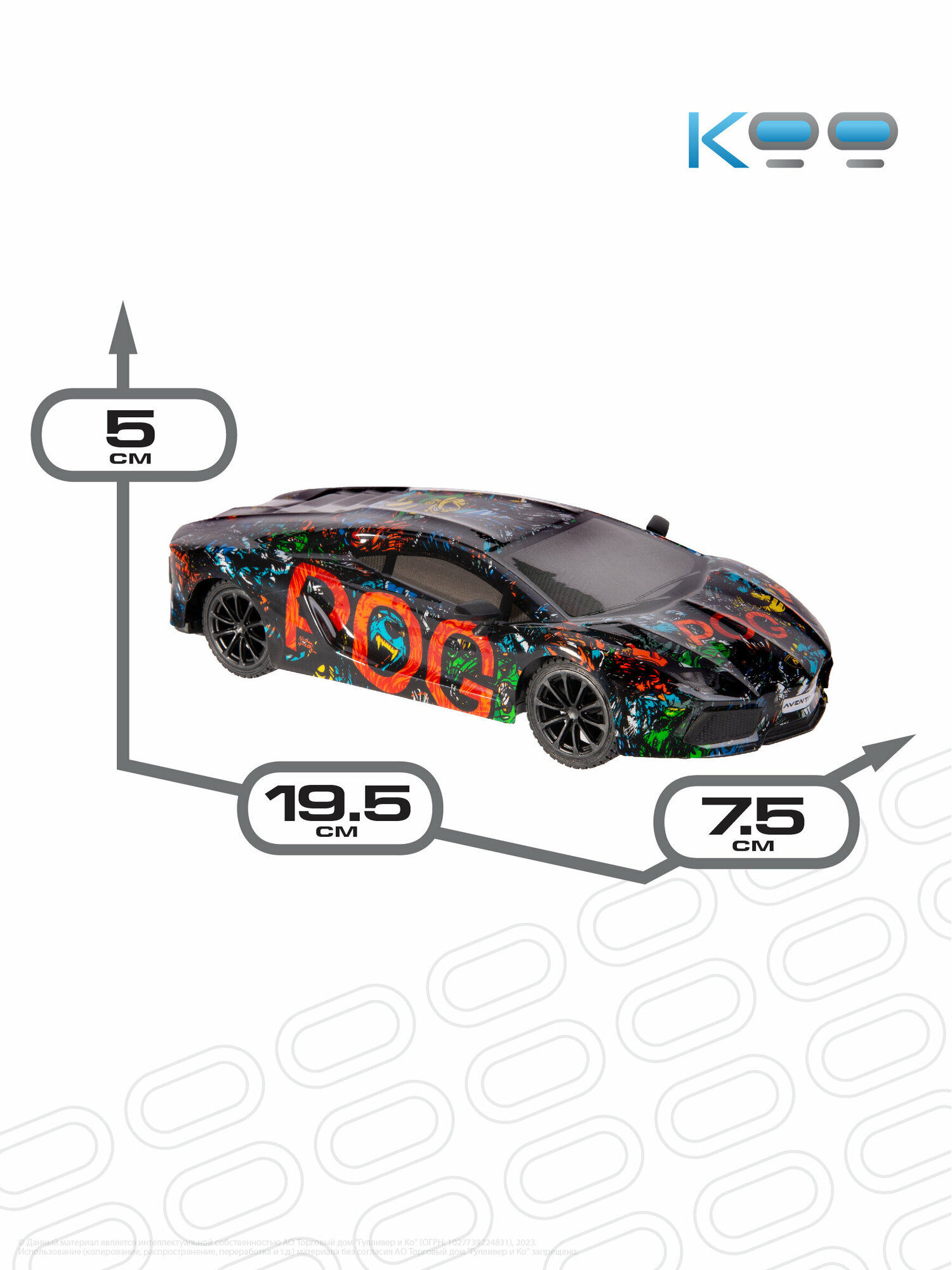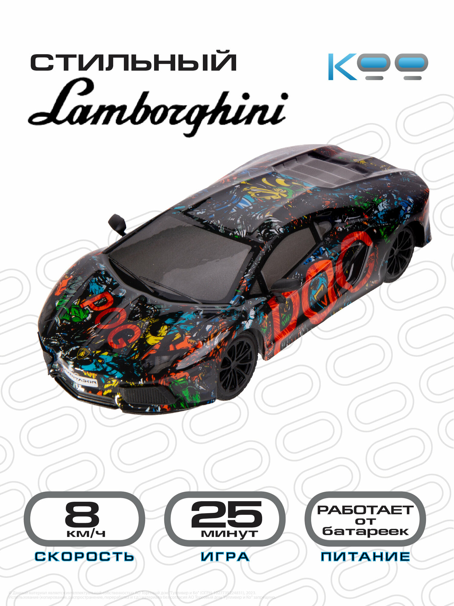 Размер машинки: 19,5 х 7,5 х 5 см. Размер упаковки: 26 х 12 х 11,5 см. Частота дистанционного управления - 2,4 GHz. Игровое время - 25 минут. Скорость машинки – 8 км/ч. Пульт управления поставляется в наборе, для него необходимы 2 батарейки 1,5V AA (не входят в комплект). Для работы самой машинки потребуются 3 батарейки 1,5V AA (не входят в комплект). Движение вперёд/назад, движение влево/вправо. В комплекте с машинкой ламба: пульт дистанционного управления, инструкция, цветной вкладыш.Кто не мечтает о красивой и супербыстрой лицензионной машинке на радиоуправлении? Представляем вам дерзкую, яркую и эксклюзивную радиоуправляемую машинку ламборгини - Погтадор 1:24 от бренда КОО! Эта игрушка на пульте управления с уникальным ярким дизайном – точная копия легендарной модели Lamborghini LP 700 Adventador. Эстетичный, смелый, скоростной, мощный и управляемый ламбо адвентадор! Благодаря уникальности этой машины ламборджини на пульте управления ваш ребёнок сможет почувствовать себя настоящим гонщиком в красивом и стильном автомобиле.Машинка ламборджини Погтадор 1:24 развивает скорость до 8 км/ч и позволяет выполнять захватывающие трюки, имитируя гоночные заезды настоящих авто! Стабильное время игры целых 25 минут!В комплект с машиной ламборгини входит пульт управления. Батарейки не входят в комплект.Незабываемые моменты игры с радиоуправляемой машинкой Погтадор 1:24 обязательно запомнятся вашему ребенку. Такая игрушка на радиоуправлении придётся по душе не только девочкам и мальчикам от 5 лет, но и подросткам и взрослым, она станет отличным подарком на День Рождения, именины, 8 марта, 23 февраля или Новый год! Этот игрушечный автомобиль никого не оставит равнодушным! Он подарит множество ярких впечатлений вам и всем вашим близким!Погрузитесь в мир драйва и скорости вместе с крутой копией ламбо!