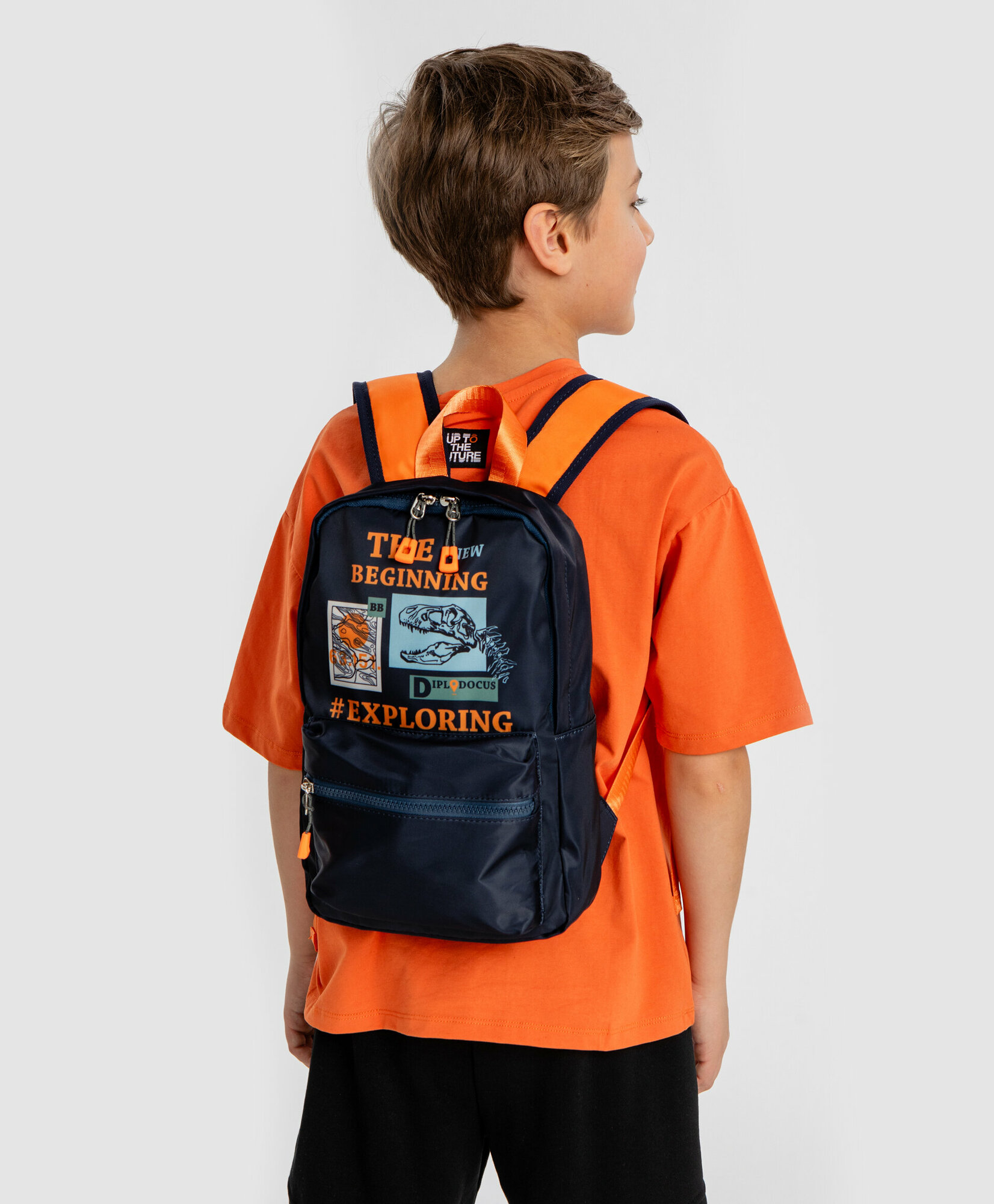 Сине-оранжевый рюкзак для мальчика. Идеальный выбор для активных и пытливых. Сочетание синего и оранжевого цветов делает образ ярче и сочнее. Рюкзак на молнии с принтами создаёт стильный образ. Широкие лямки обеспечивают комфортную посадку, а укрепленная спинка защищает спину от нагрузок. Вместительный внутренний отсек позволяет удобно разместить все необходимые вещи. Рюкзак изготовлен из качественного полиэстера, что гарантирует долговечность и надежность.