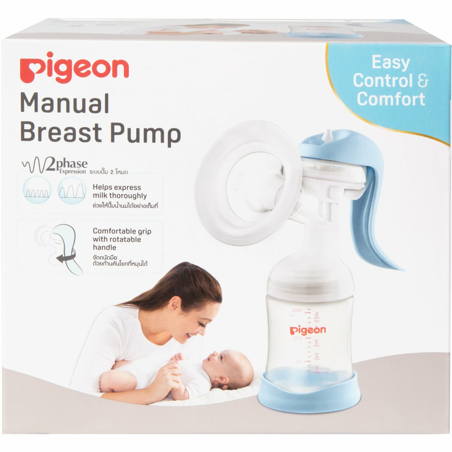 PIGEON Ручной молокоотсос с двухфазным режимом обеспечивает эффективное и бережное сцеживание, максимально приближенное к естественному кормлению ребенка грудью. Мягкая эластичная силиконовая воронка Comfort PropertFit™ плотно и комфортно прилегает к груди, предотвращая проникновение воздуха. Двухфазная технология: «Режим стимуляции» мягко стимулирует приток молока, «Режим сцеживания» позволяет легко контролировать процесс сцеживания. Эргономичная рукоятка помогает комфортному сцеживанию без особых усилий. Регулирование позиции стержня и рукоятки позволяет легко переключаться между режимами.Силиконовая крышка-заглушка (в комплекте) позволяет плотно закрыть бутылочку для хранения сцеженного молока.Подставка для бутылочки обеспечивает устойчивость молокоотсоса.Молокоотсос состоит из минимального количества деталей. Его легко разбирать и собирать, удобно мыть, стерилизовать.