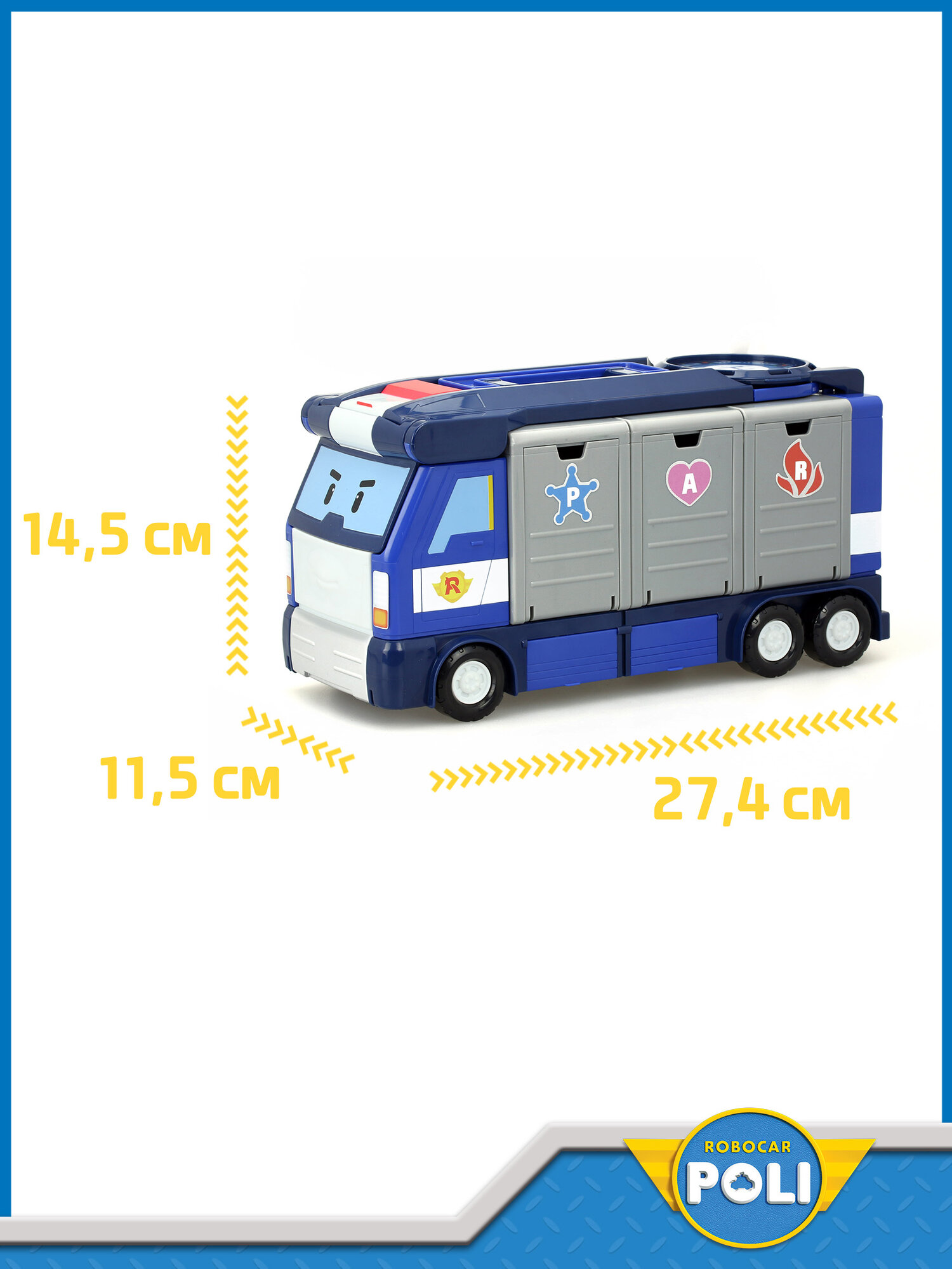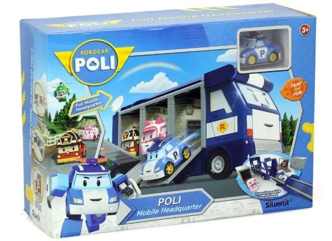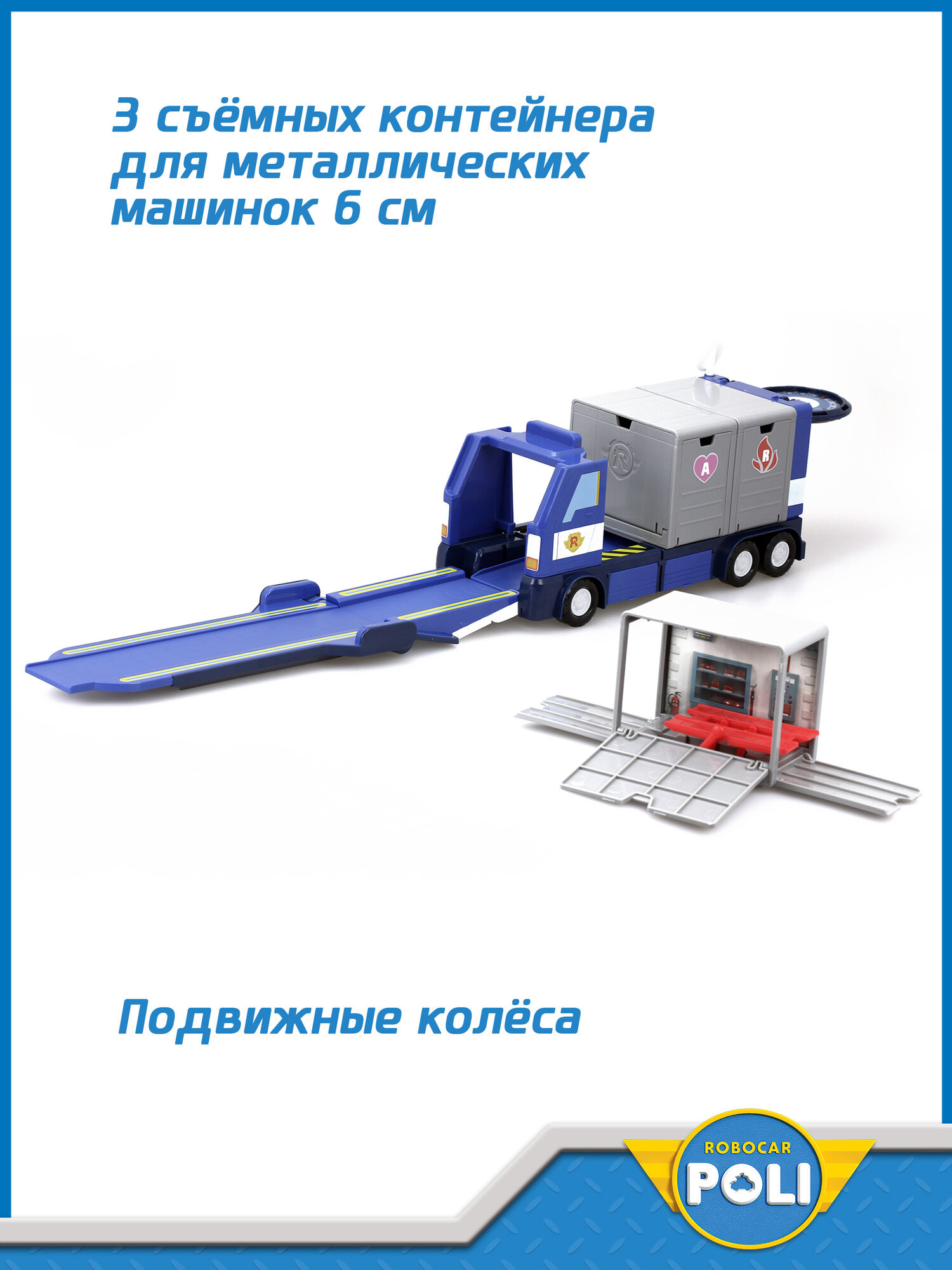 | Состав набора | три контейнера для машинок; металлическая машинка Поли 6 см; Передвижная штаб-квартира |