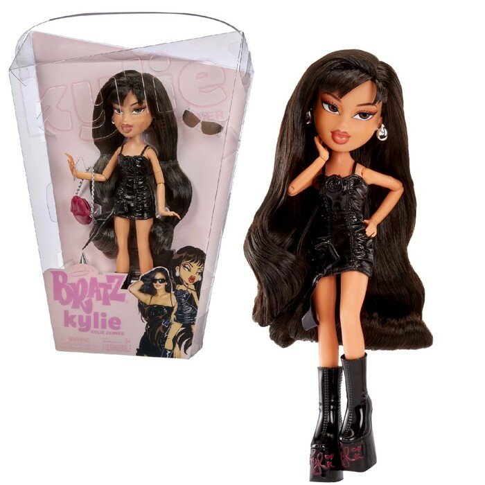 Куклы Братц - бескомпромиссно модные, смелые и прорывные, они продолжают преодолевать барьеры и покорять сердца.Братц оказали влияние на многих, в том числе и на самых знаменитых людей мира! Встречайте невероятную звёздную коллекцию Братц селебрити! Две силы поп-культуры объединились, когда Кайли Дженнер вошла в мир Братц!Впервые в истории в линейке модных кукол появилась одна из самых известных икон стиля. Кукла Кайли Дженнер в дневном образе одета в черное короткое лакированное платье и высокие сапоги на платформе с надписью "Kylie". Вы только посмотрите на ее сумочку! Стиль и безупречный вкус в деталях.Кайли Дженнер можно найти в 2-х образах: дневной и вечерний. Какой выберете вы?В наборе кукла высотой 27 см с длинными густыми прошитыми волосами, подвижными руками и ногами (11 точек артикуляции), 1 комплект одежды, обувь со съемными ногами, серьги, сумка, очки, расческа, сертификат, подставка для куклы, постер. Игрушка изготовлена из полимерных и текстильных материалов. Товар сертифицирован и безопасен для детского использования. Упаковка: трапециевидная упаковка 23 х 6,5 х 31 см.