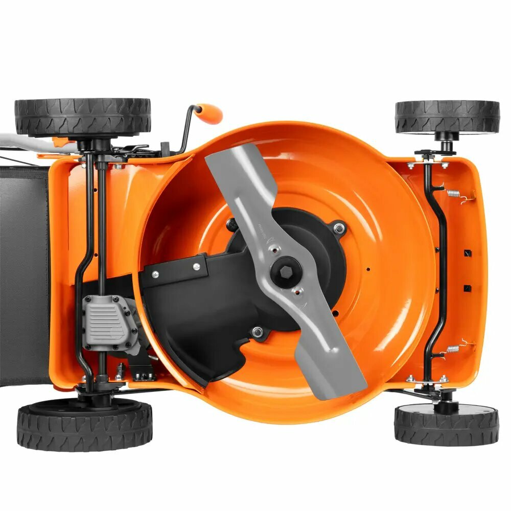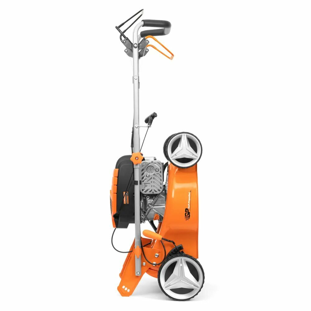 - колеса на подшипниках делают ход косилки легче, снижая физические усилия пользователя;