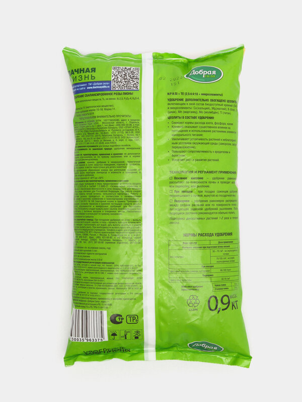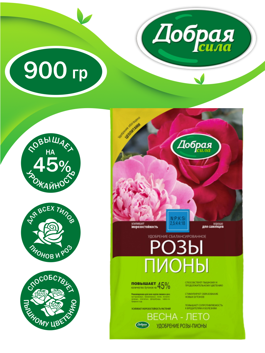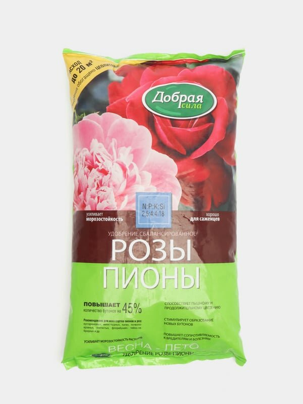| Комплектация | Добрая сила Сухое удобрение Розы-Пионы 900 гр. |
