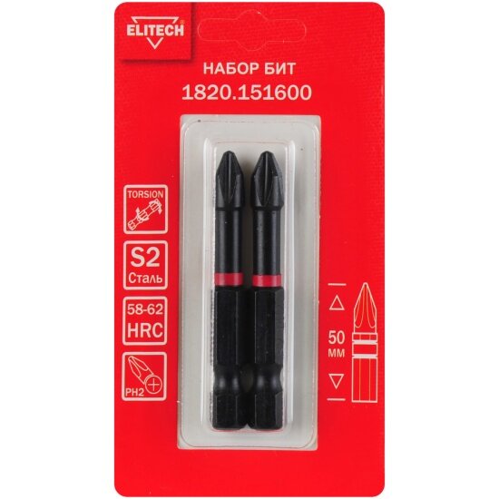 Бита ударная Elitech 1820.151600 PH2x50 мм 2 шт.