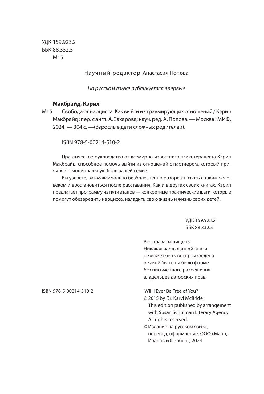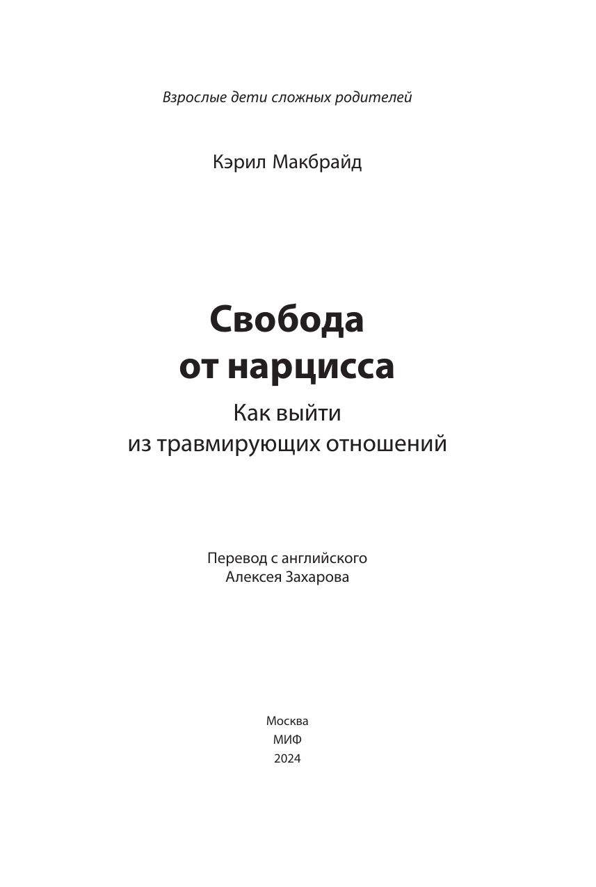 Свобода от нарцисса. Как выйти из травмирующих отношений (Кэрил Макбрайд); Манн, Иванов и Фербер, 2024