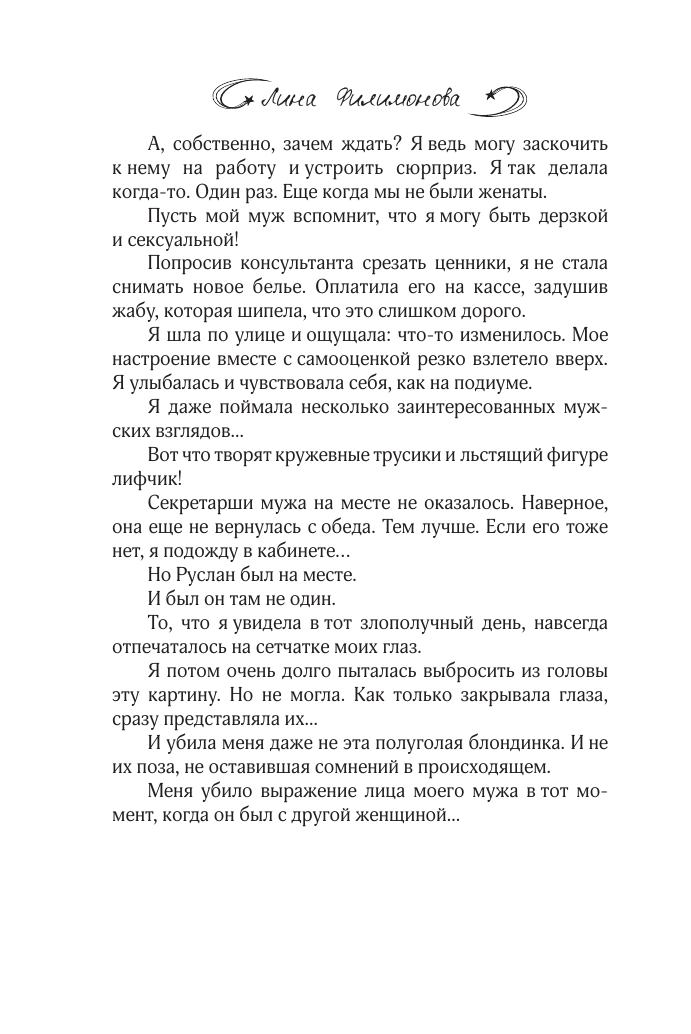 Я верила своему мужу. Когда он задерживался на работе, я гнала прочь ревнивые мысли. А однажды я решила сделать ему сюрприз… Но сюрприз ждал меня. Полуголая блондинка в его кабинете. Все! Развод и девичья фамилия. Я ее не отпущу. Какой развод?! Да, я не святой. Но семья для меня ? все. Мой ребенок не будет расти без меня! Даже если для этого придется вывернуться наизнанку…