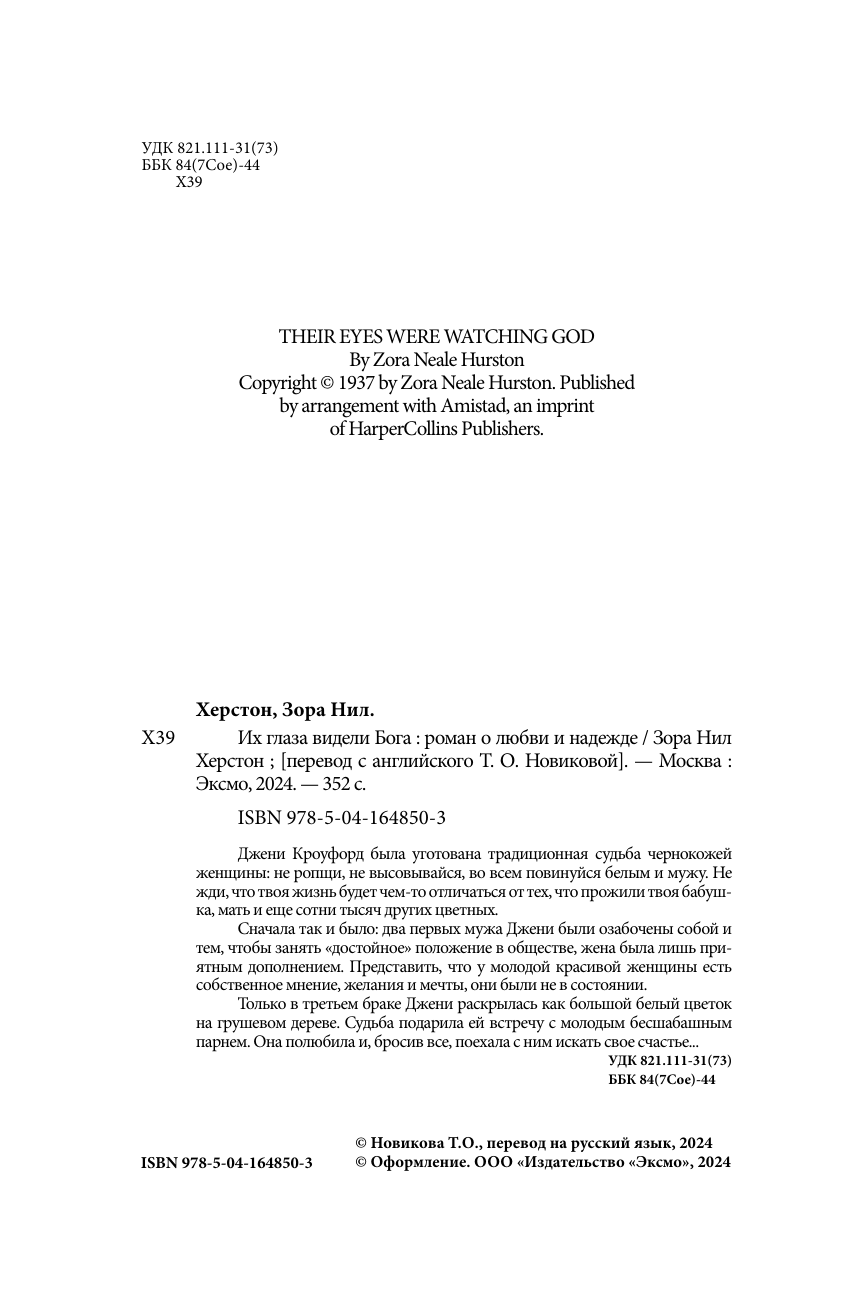 Их глаза видели Бога. Роман о любви и надежде (Херстон Зора Нил); ООО "Издательство "Эксмо", 2024