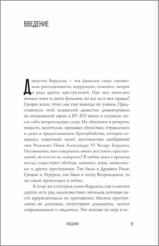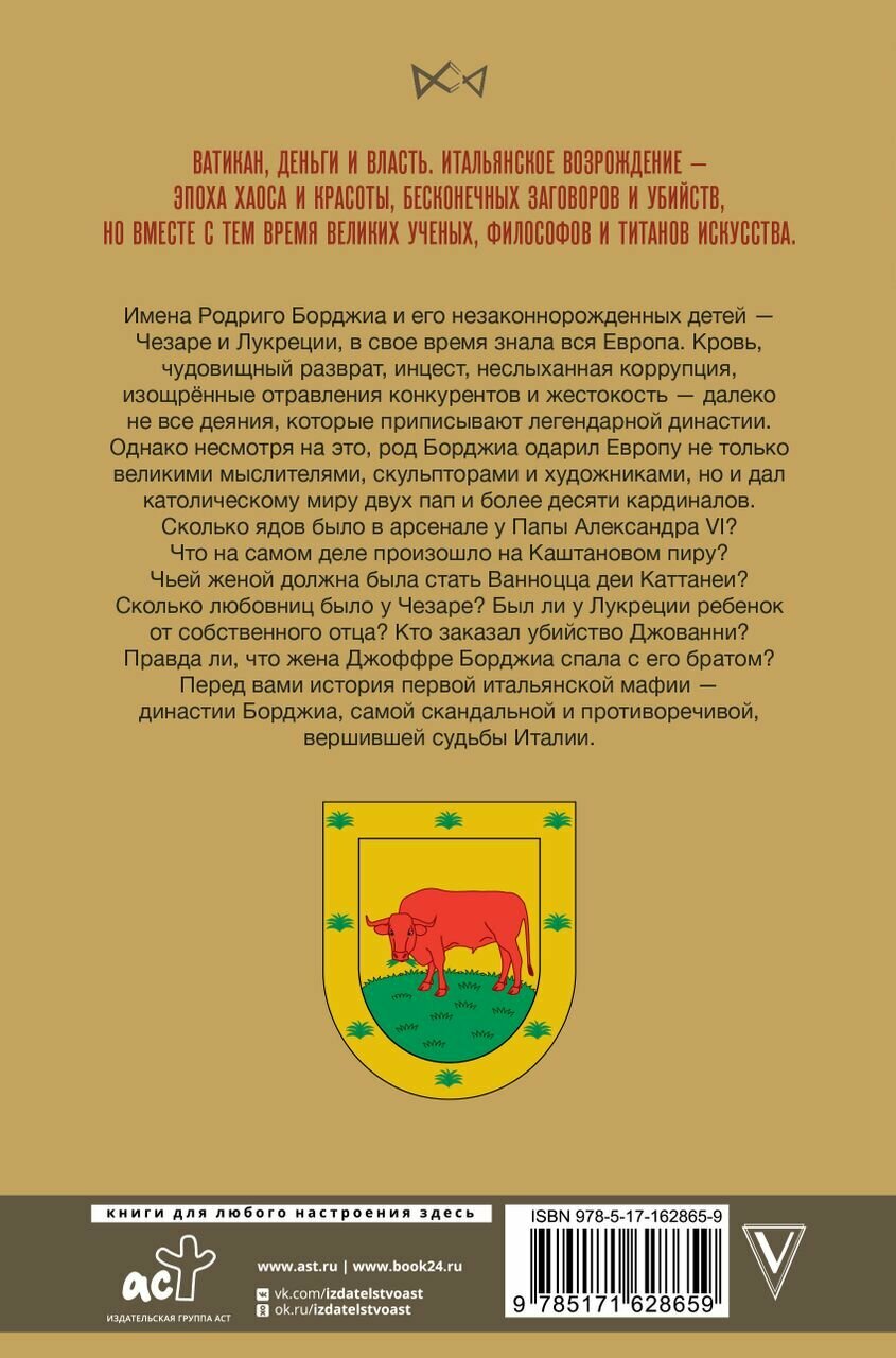 Имена Родриго Борджиа и его незаконнорожденных детей — Чезаре и Лукреции, в свое время знала вся Европа. Кровь, чудовищный разврат, инцест, неслыханная коррупция, изощрённые отравления конкурентов и жестокость — далеко не все деяния, которые приписывают легендарной династии. Однако несмотря на это, род Борджиа одарил Европу не только великими мыслителями, скульпторами и художниками, но и дал католическому миру двух пап и более десяти кардиналов.