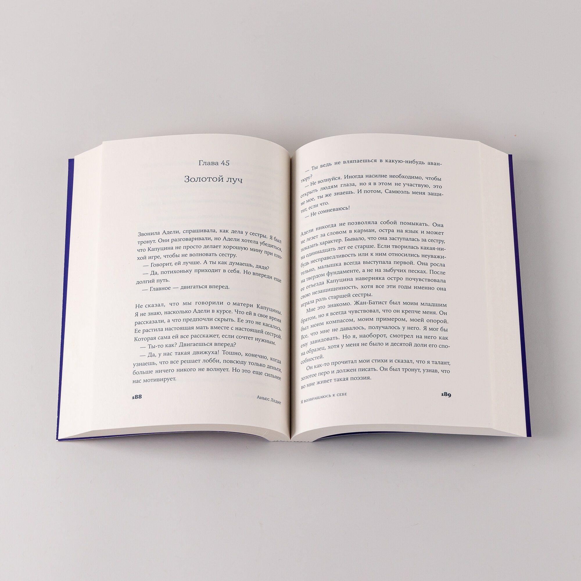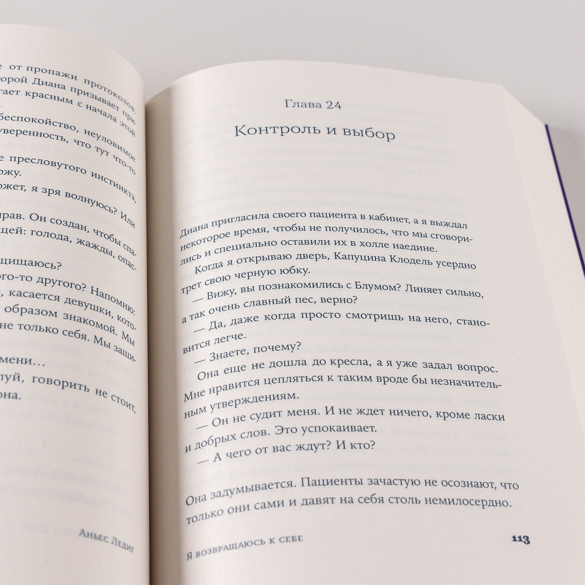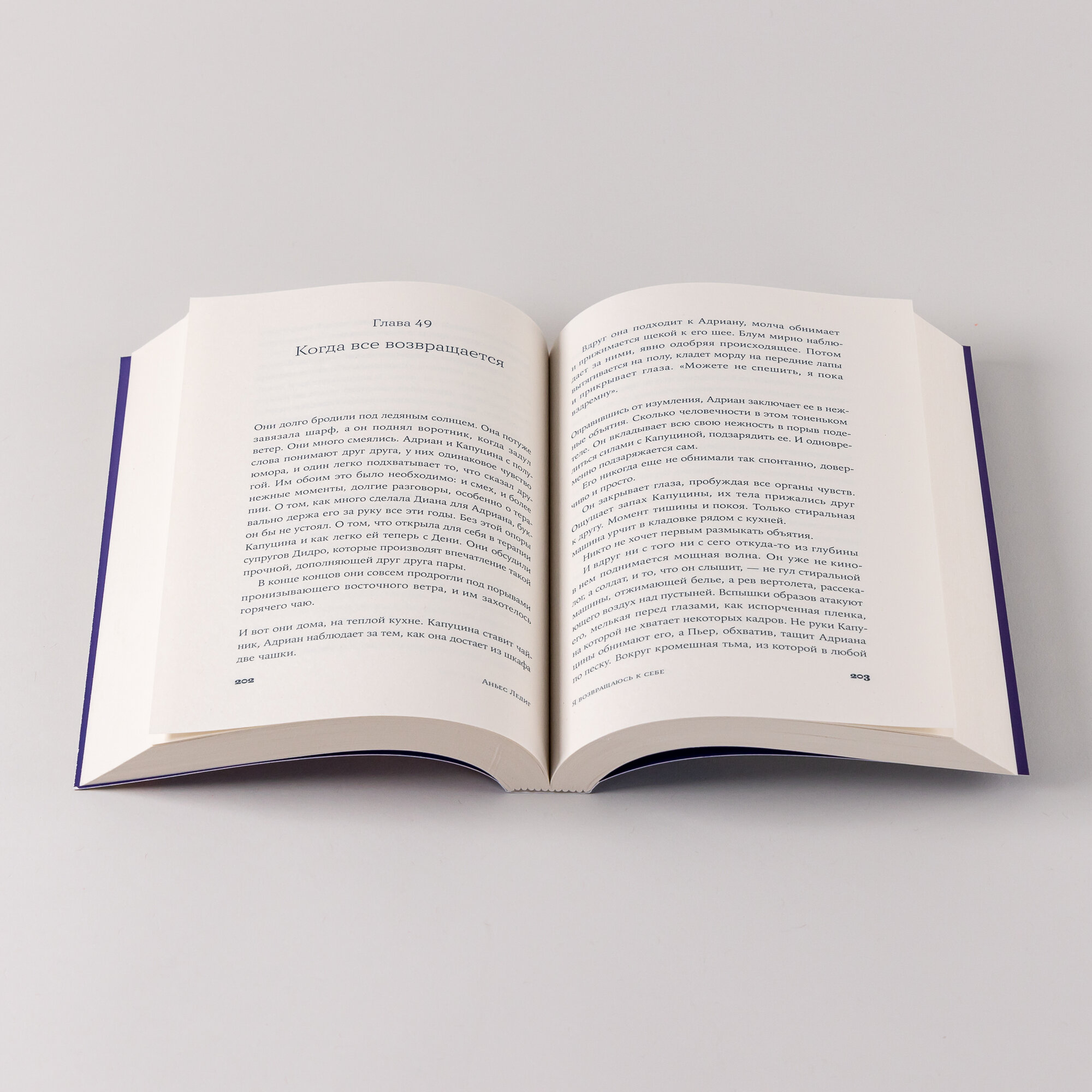 Эта история началась с потери. Девушка, несколько лет назад пережившая болезненное расставание, забывает чемодан на центральном вокзале Страсбурга. Инцидент неожиданно переворачивает ее жизнь, заставляя отправиться в путешествие в поисках себя самой. Ее проводниками становятся опытный кинолог Адриан, сильный, но уязвимый человек, и его необычайно чувствительный пес Блум. Смогут ли две потерянные души найти общий язык и помочь другу другу? «Я возвращаюсь к себе» — пронзительная история о том, как пройти через боль утраты и одиночество, чтобы обрести исцеление. Аньес Ледиг мастерски переплетает судьбы героев, и вопрос о том, найдут ли они силы принять прошлое и открыться будущему, остается открытым до последних страниц романа.
