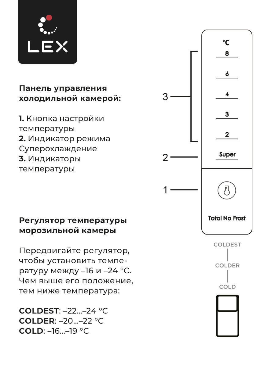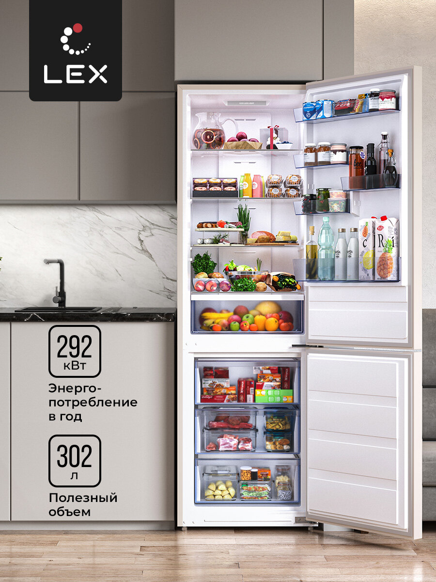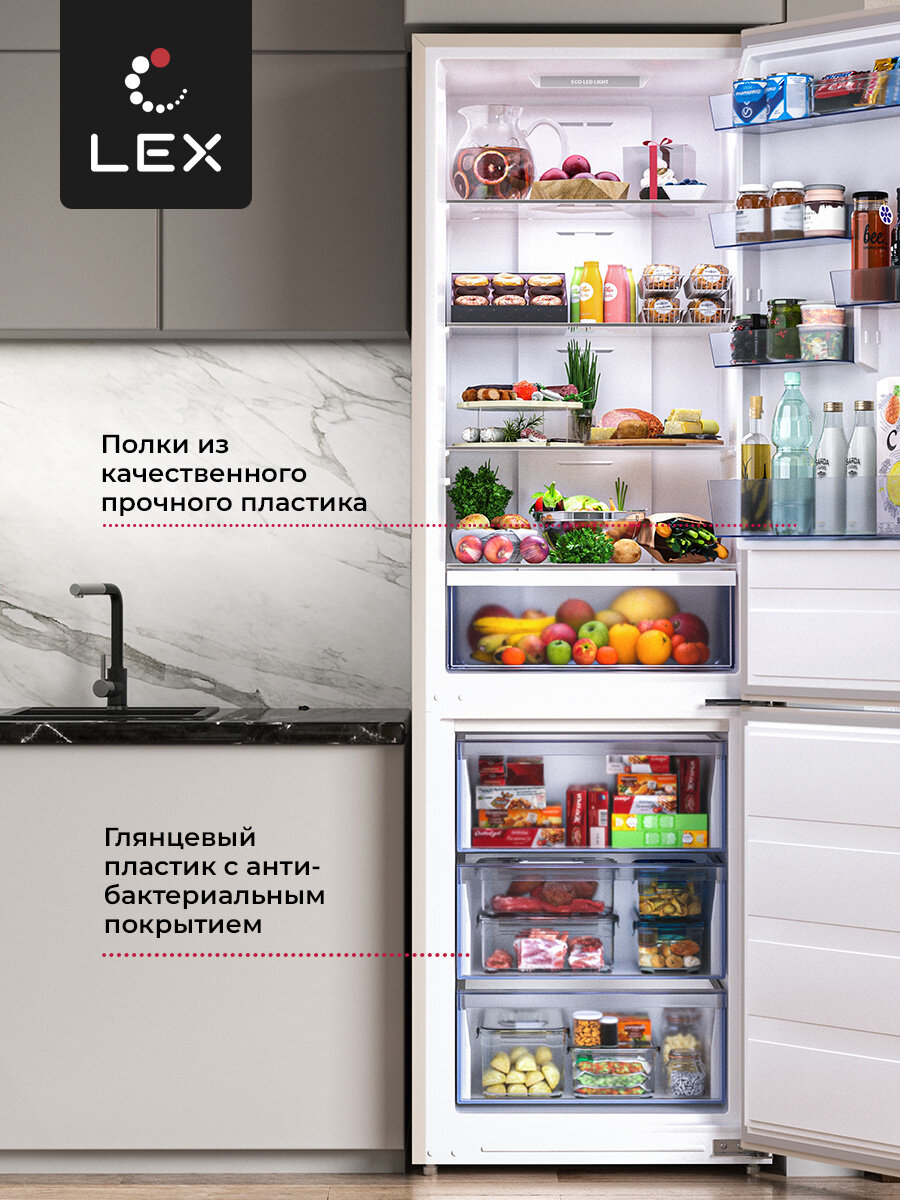 Холодильник LEX LKB188.2 оснащен современным инверторным компрессором, который гарантирует эффективную и практически бесшумную работу. Он также обеспечивает низкий расход энергии и долго поддерживает температуру без электропитания. Технология Total No Frost значительно упрощает обслуживание и помогает устанавливать оптимальную температуру и влажность.Стильный дизайн модели добавит элегантности в любую кухню.Два отделения с полезным объемом 302 литров дают возможность хранить все блюда и напитки на удобном уровне. Внутреннее пространство холодильника организовано максимально эффективно благодаря регулируемым полкам.LED-лампы обеспечивают яркий свет, помогая вам быстро найти все, что нужно. Электронная панель управления делает настройку параметров интуитивно понятной. А перенавешиваемые двери делают холодильник LEX LKB188.2 универсальным для любой кухни.