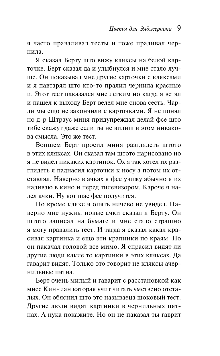 "Цветы для Элджернона" Дэниела Киза входят в программу обязательного чтения в американских школах. Эта единственная история в жанре научной фантастики, автор которой был дважды награжден сначала за рассказ, а потом за роман с одним и тем же названием, героем, сюжетом. Тридцатитрехлетний Чарли Гордон – умственно отсталый. При этом у него есть работа, друзья и непреодолимое желание учиться. Он соглашается принять участие в опасном научном эксперименте в надежде стать умным… Изменения с Чарли Гордоном происходят на наших глазах, здесь и сейчас. В первых отчетах полно орфографических ошибок, ему очень трудно излагать свои мысли, постепенно он начинает писать правильно и рассказывать о событиях идеально. Эта фантастическая история обладает поразительной психологической силой и заставляет задуматься над общечеловеческими вопросами нравственности: имеем ли мы право ставить друг над другом эксперименты, к каким результатам это может привести и какую цену мы готовы заплатить за то, чтобы стать "самым умным". А одиноким? На вопросы, которые поднимали еще М. Булгаков в "Собачьем сердце" и Дж. Лондон в "Мартине Идене", Дэниел Киз дает свой однозначный ответ.