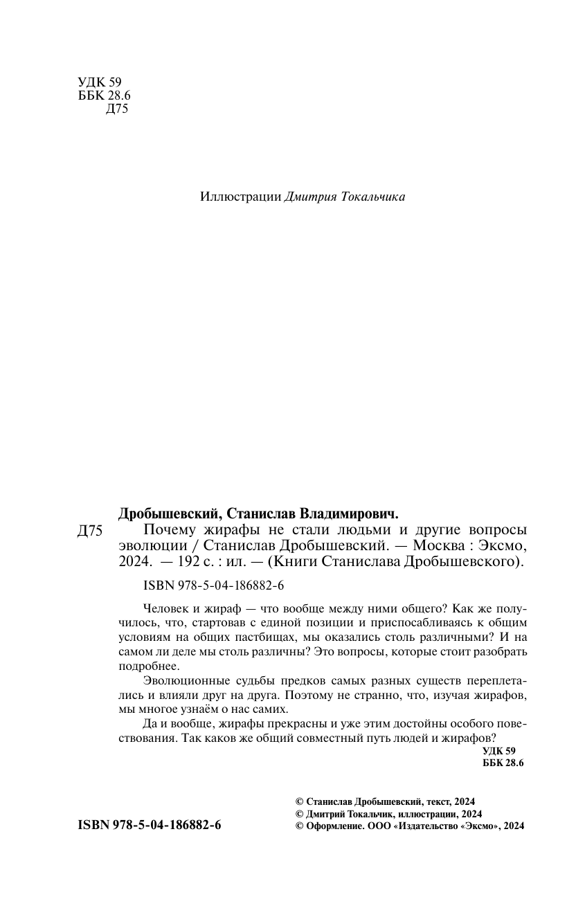 Почему жирафы не стали людьми и другие вопросы эволюции (Дробышевский Станислав Владимирович); ООО "Издательство "Эксмо", 2024