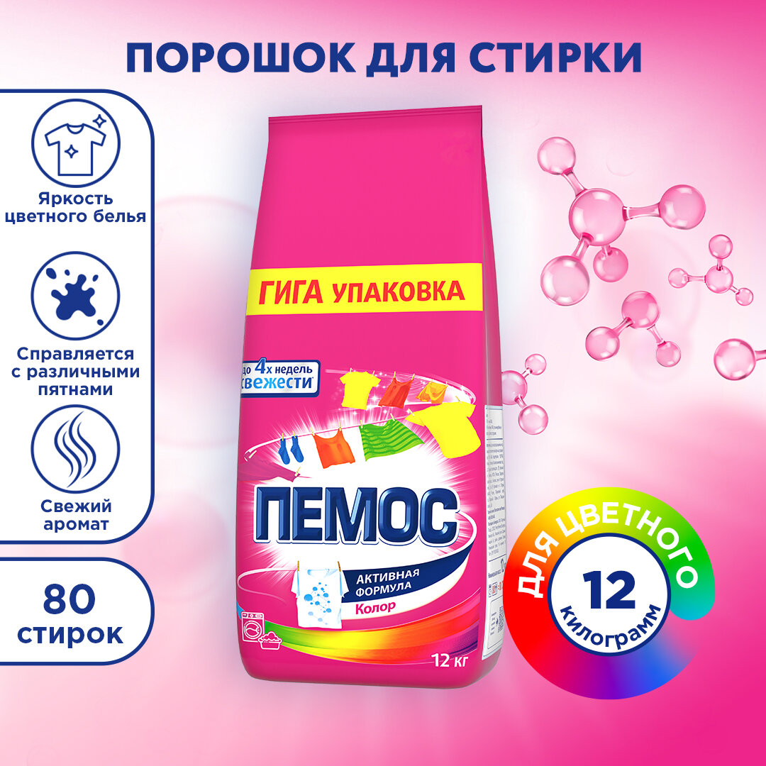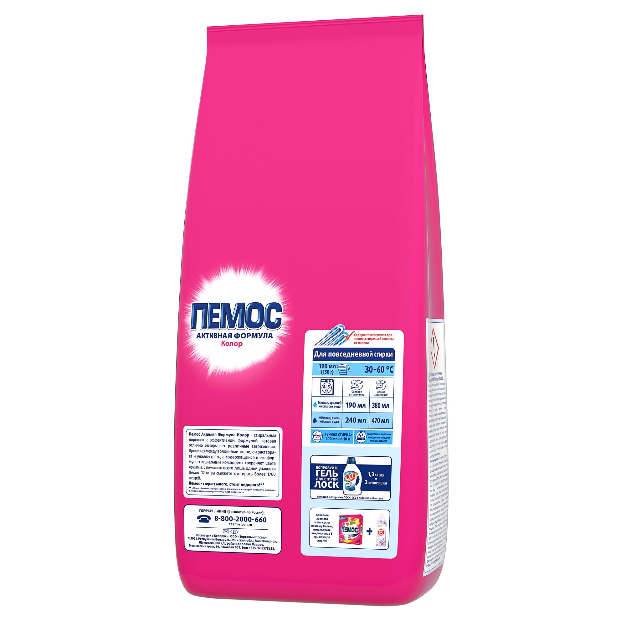 Пемос Активная Формула Колор - стиральный порошок с эффективной формулой, которая отлично отстирывает различные загрязнения. Проникая между волокнами ткани, он растворяет и удаляет грязь, а содержащийся в его формуле специальный компонент сохраняет цвета яркими. Пемос - стирает много, стоит недорого!
