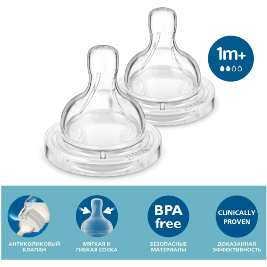 Соска Philips Avent с медленным потоком Philips Avent Anti-colic 1 мес.+ 2 шт
