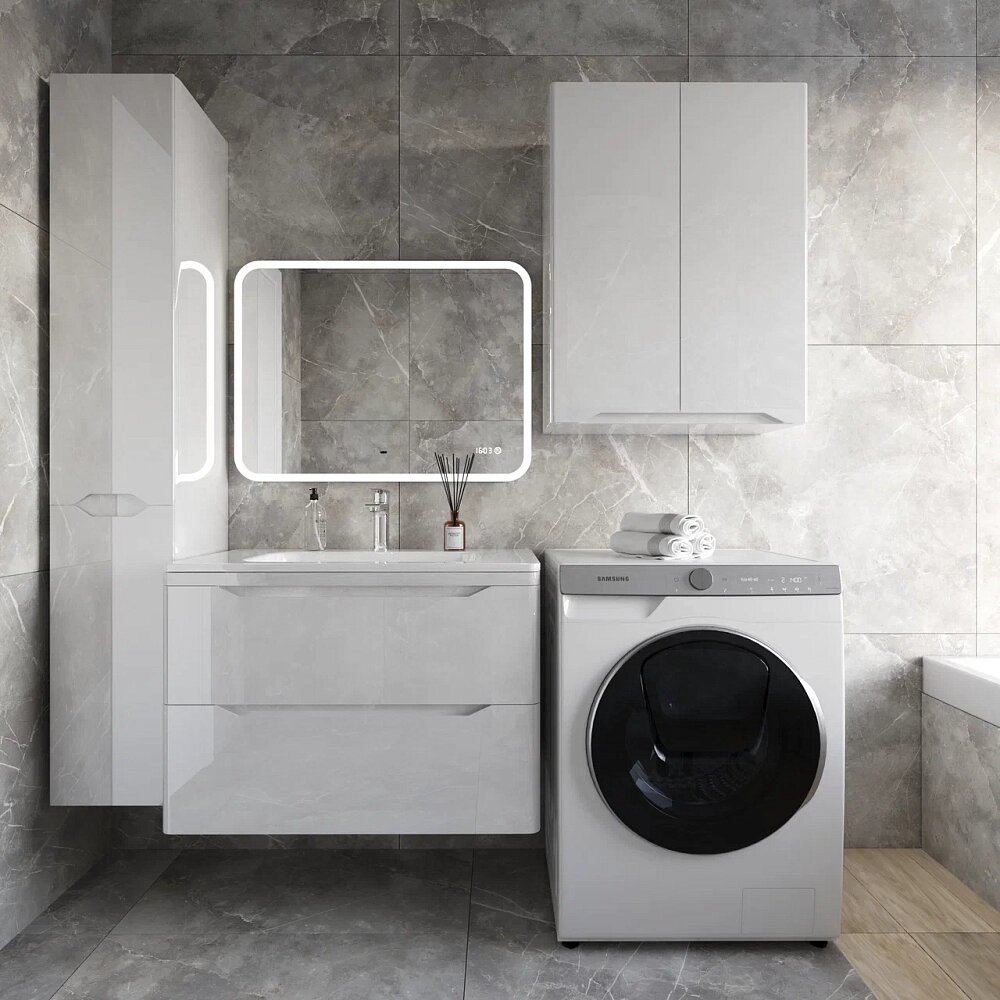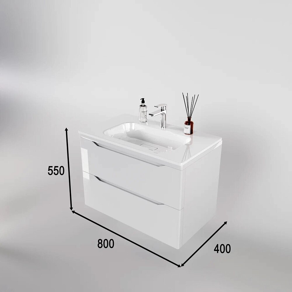 Тумба с раковиной Style Line Марелла 80 Люкс Plus подвесная 2 ящика белый глянец Марелла СС-00002411