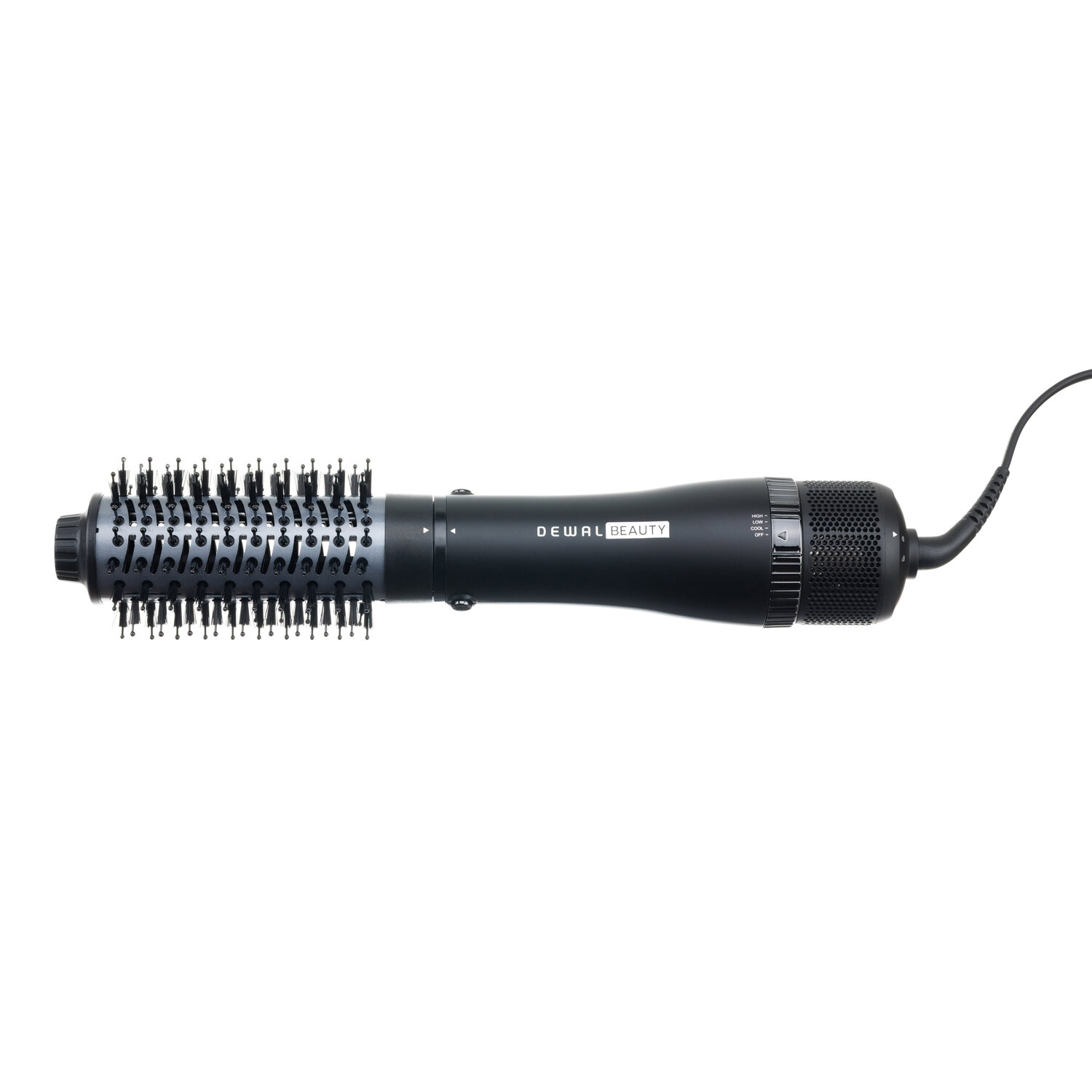 Фен-щетка Dewal Beauty доступна с насадкой 43 мм и оснащена вращающимся шнуром, что предотвращает его запутывание.