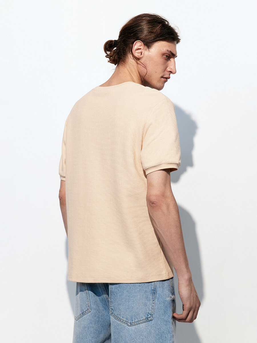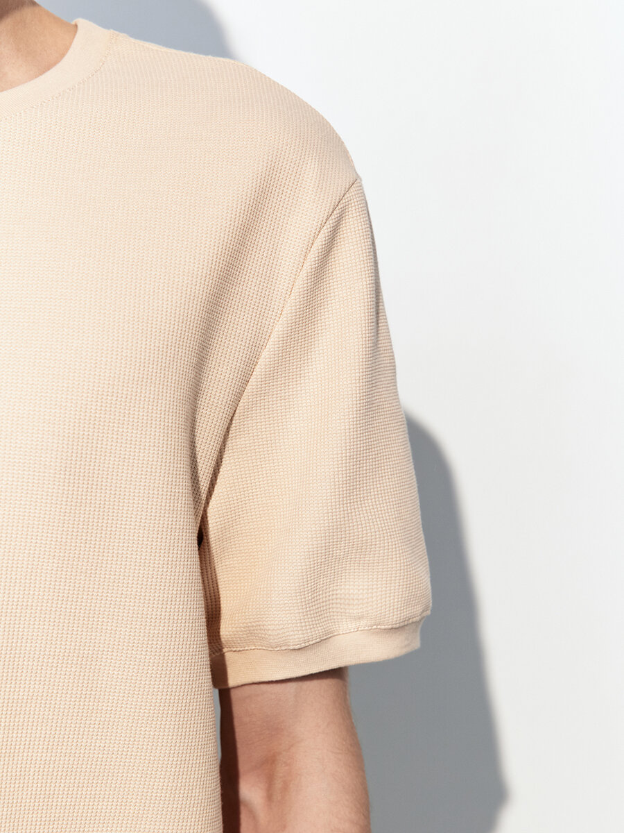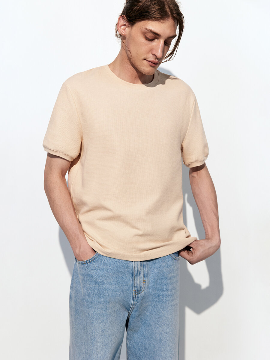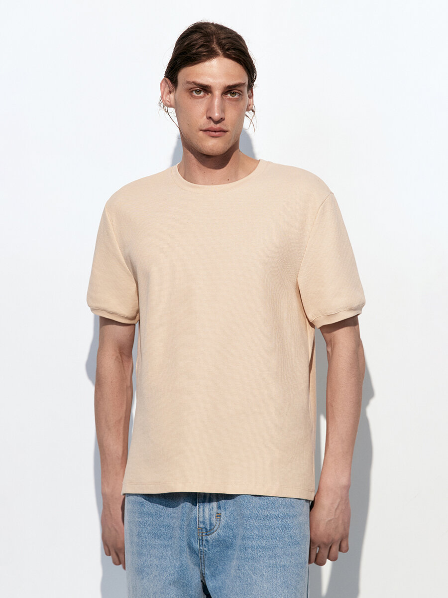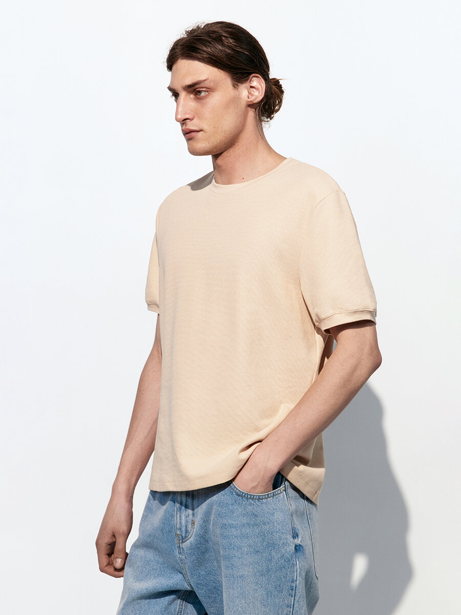 - Футболка с вафельной фактурой. Мужская футболка прямого кроя из мягкой, приятной к телу смесовой ткани на основе хлопка с фактурой "вафля"