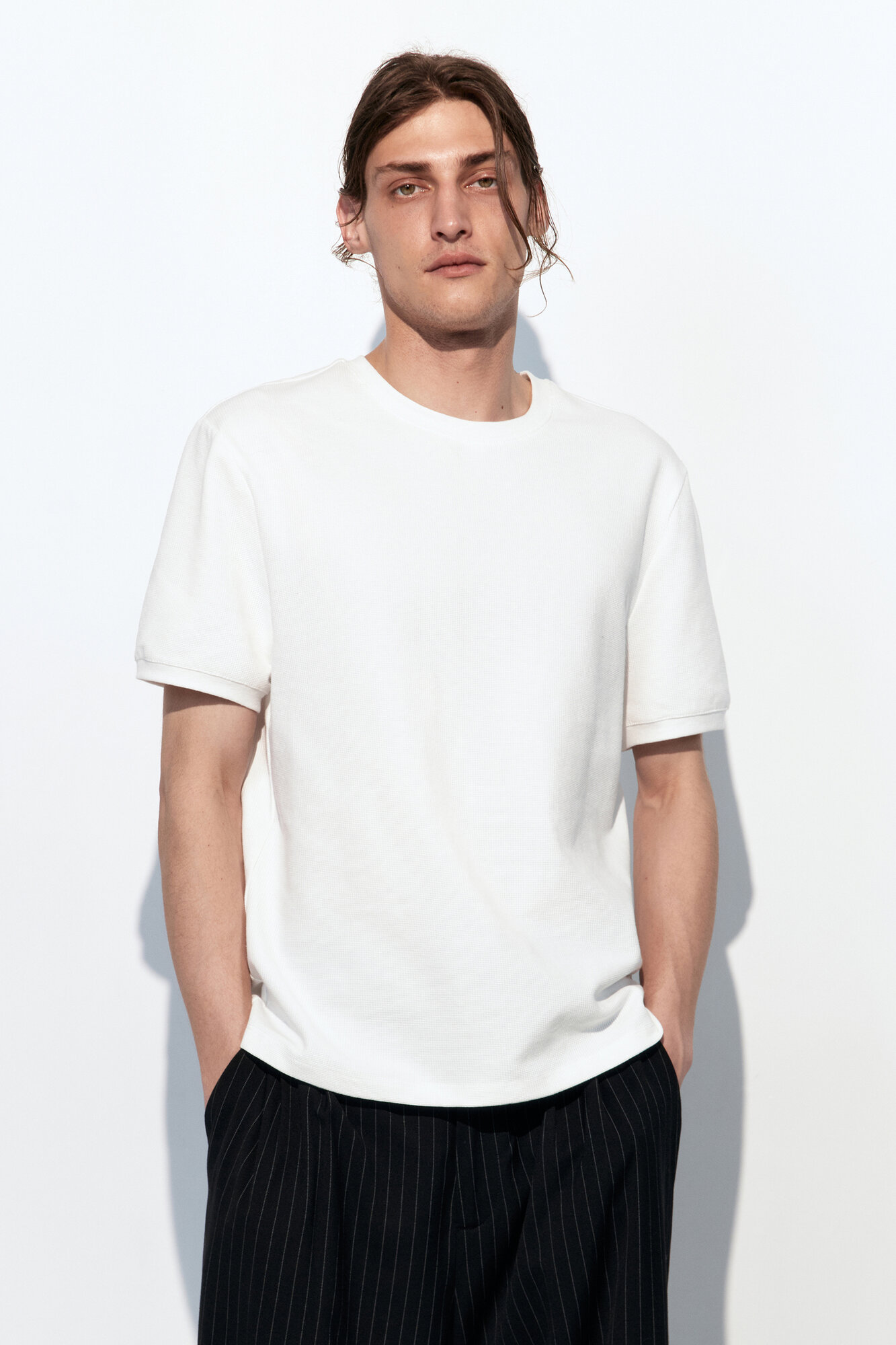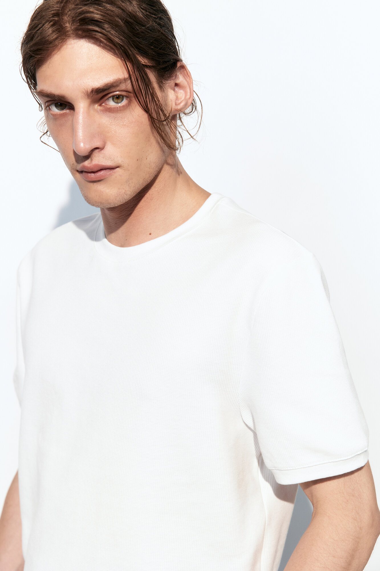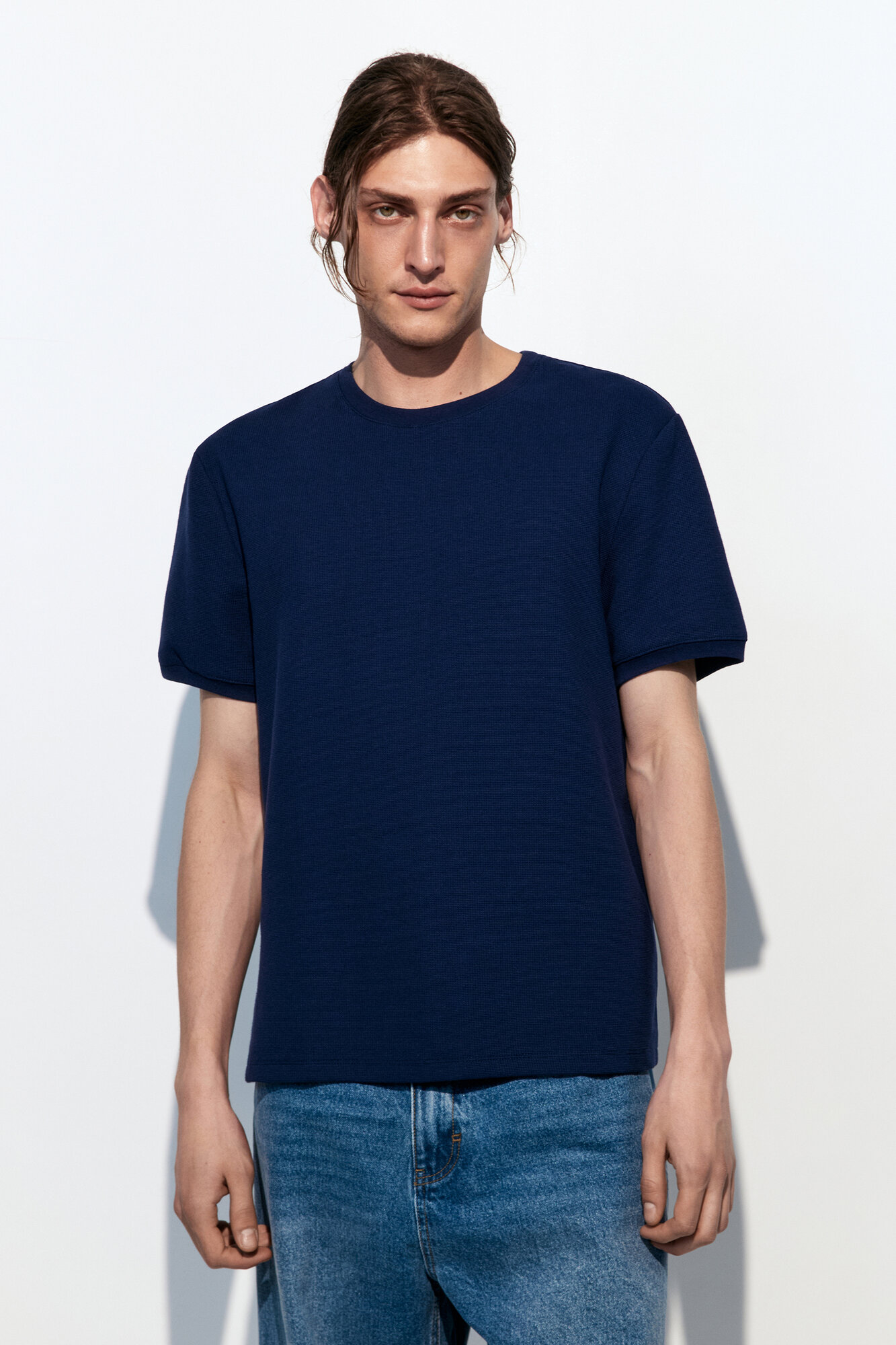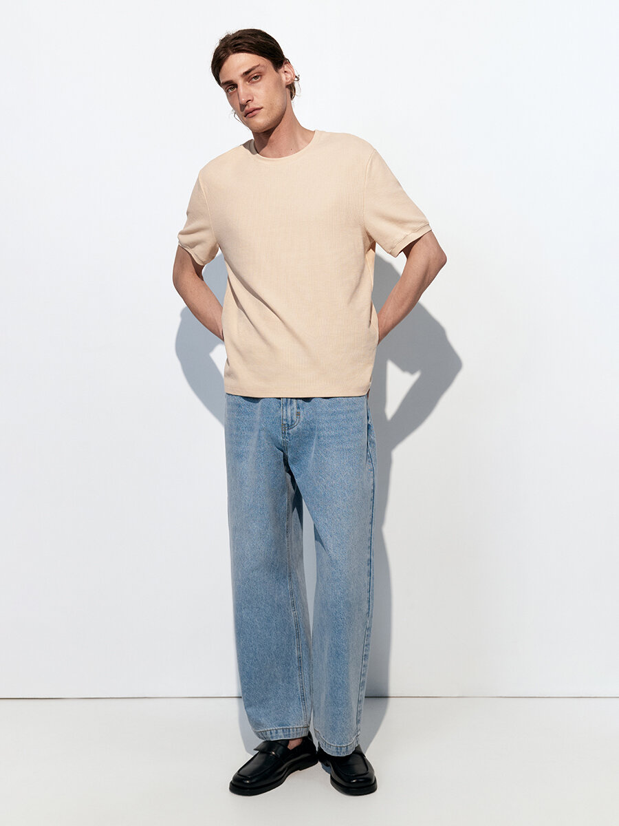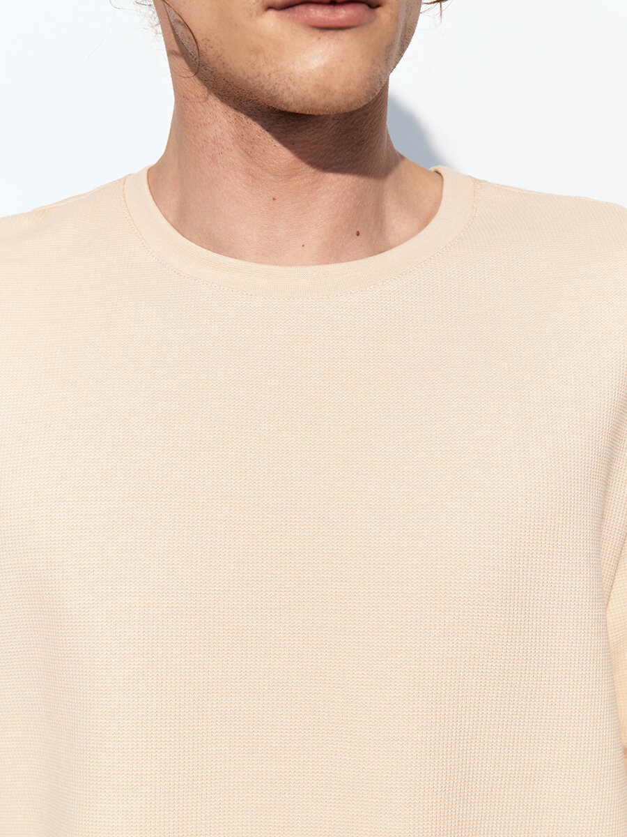 - Футболка с вафельной фактурой. Мужская футболка прямого кроя из мягкой, приятной к телу смесовой ткани на основе хлопка с фактурой "вафля"