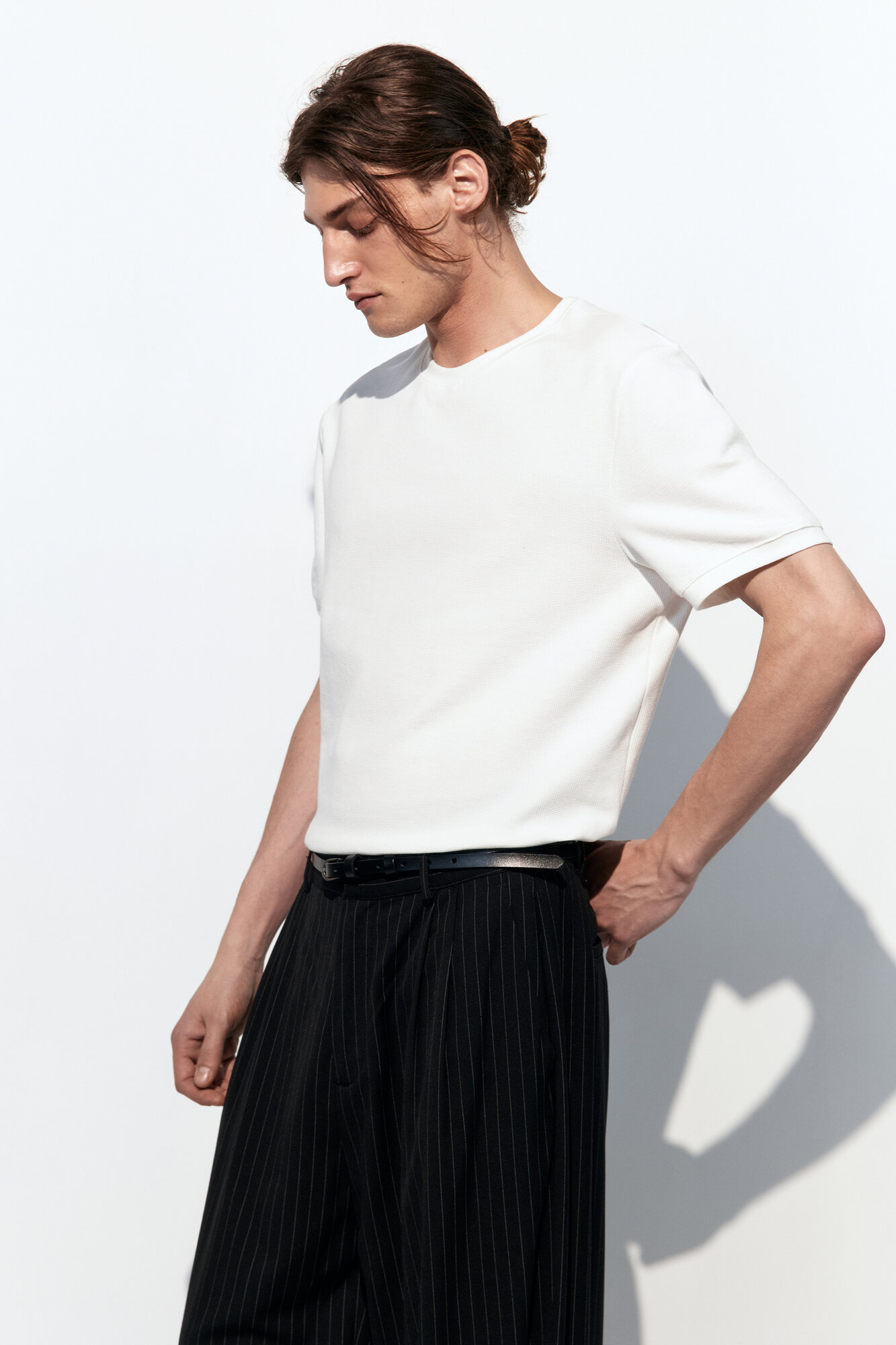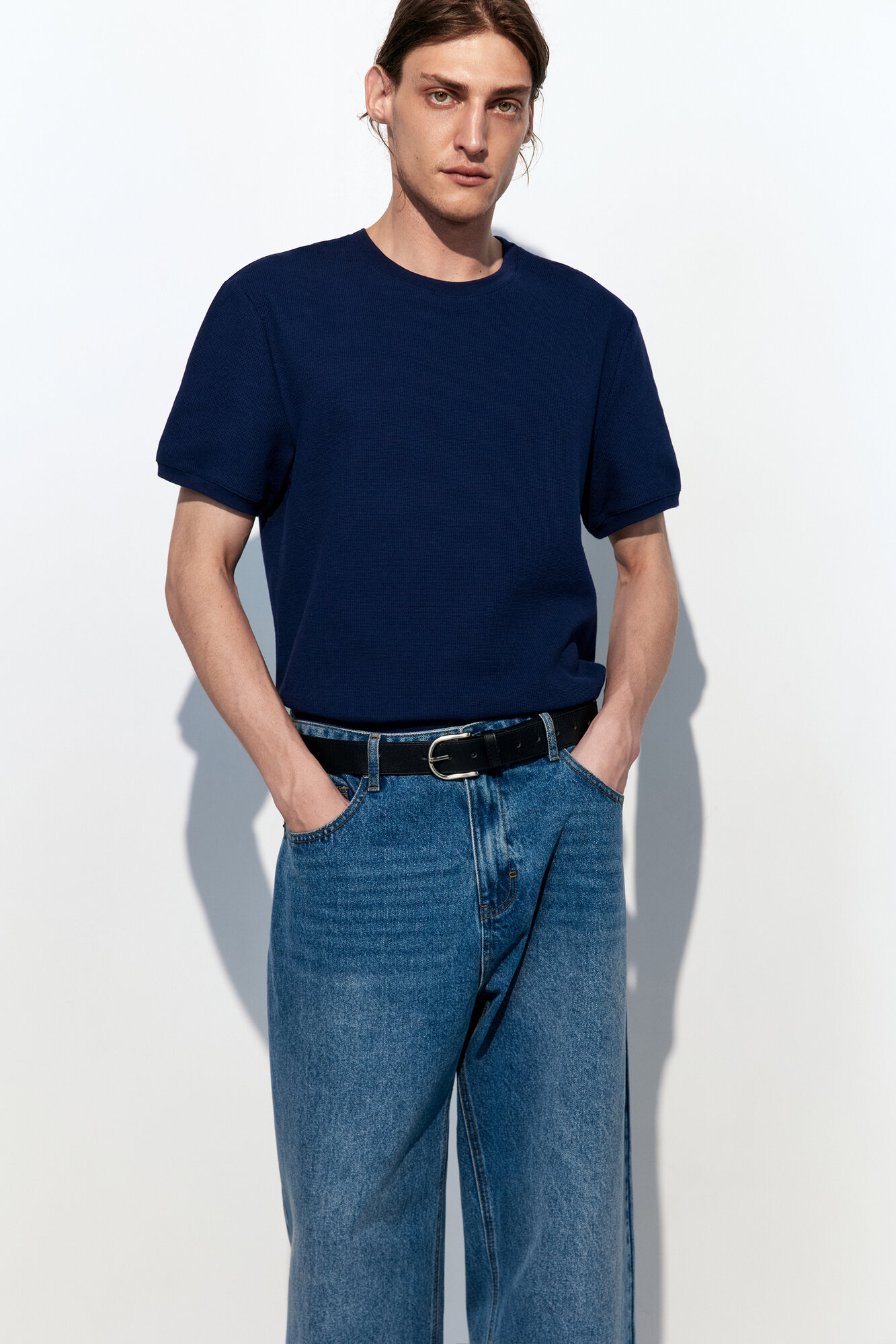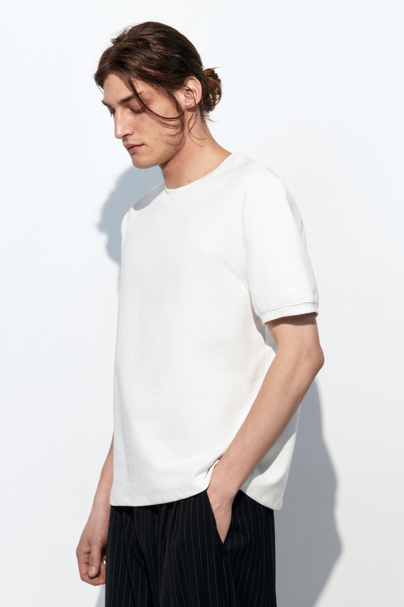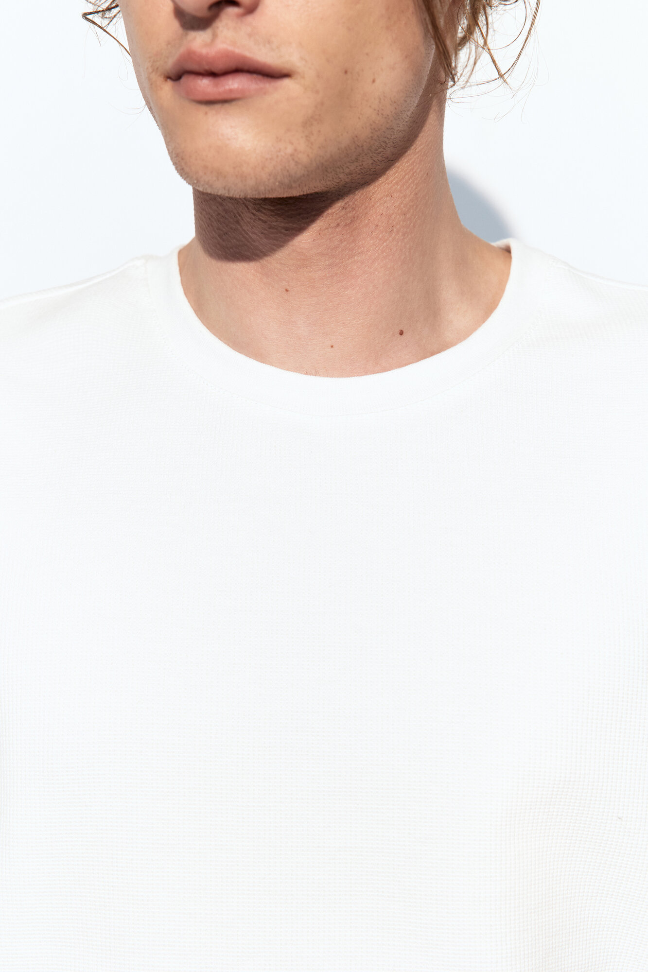 - Футболка с вафельной фактурой. Мужская футболка прямого кроя из мягкой, приятной к телу смесовой ткани на основе хлопка с фактурой "вафля"