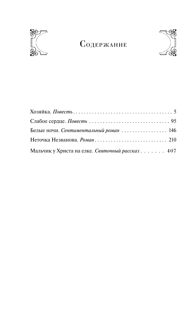 Федор Михайлович Достоевский (1821 — 1881) еще в юности определил свою главную писательскую задачу: "Человек есть тайна. Ее надо разгадать, и ежели будешь ее разгадывать всю жизнь, то не говори, что потерял время; я занимаюсь этой тайной, ибо хочу быть человеком". Следуя своему принципу, писатель сотворил множество многогранных персонажей и сложных сюжетов, над анализом которых и по сей день бьются исследователи. В его повестях есть всё: таинственные любовные треугольники, несчастные браки и затаенная злоба, бурные выяснения отношений и мечтательность отчаянных романтиков, жертвенность и деспотичность.В книгу вошли повести "Хозяйка" (1847), "Неточка Незванова" (1849), "Слабое сердце" (1848), "Белые ночи. Сентиментальный роман" (1848) и рассказ "Мальчик у Христа на Елке" (1876).