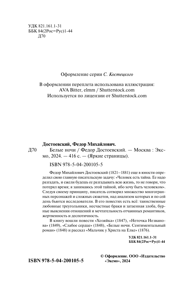 Книга: Белые ночи (Достоевский Федор Михайлович); ООО "Издательство "Эксмо", 2024