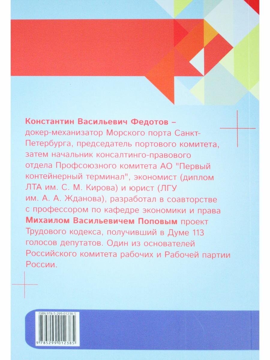 Настоящее пособие подготовлено президентом Фонда Рабочей Академии профессором по кафедре экономики и права М. В. Поповым и вице-президентом Фонда Рабочей Академии начальником консалтинго-правового отдела Портового комитета Российского профсоюза докеров морского порта Санкт-Петербурга К. В. Федотовым. В нём изложен вариант юридически правильных и проверенных на практике действий работников профсоюза как полномочного представителя работников по ведению коллективного трудового спора за заключение в организации Коллективного договора, Соглашения. Учитываются особенности трудового законодательства, сложившегося после введения в действие в 2002 году нового Трудового кодекса Российской Федерации.