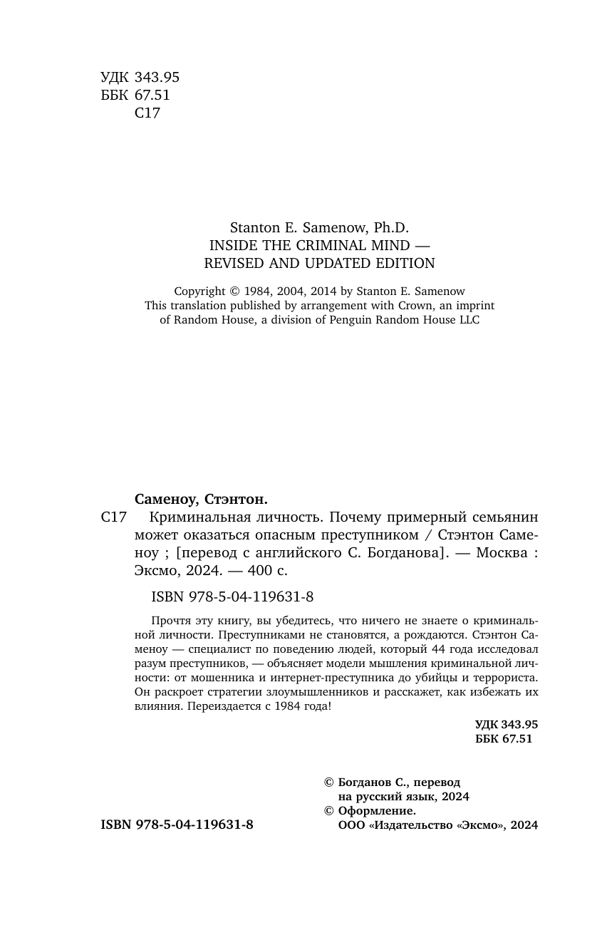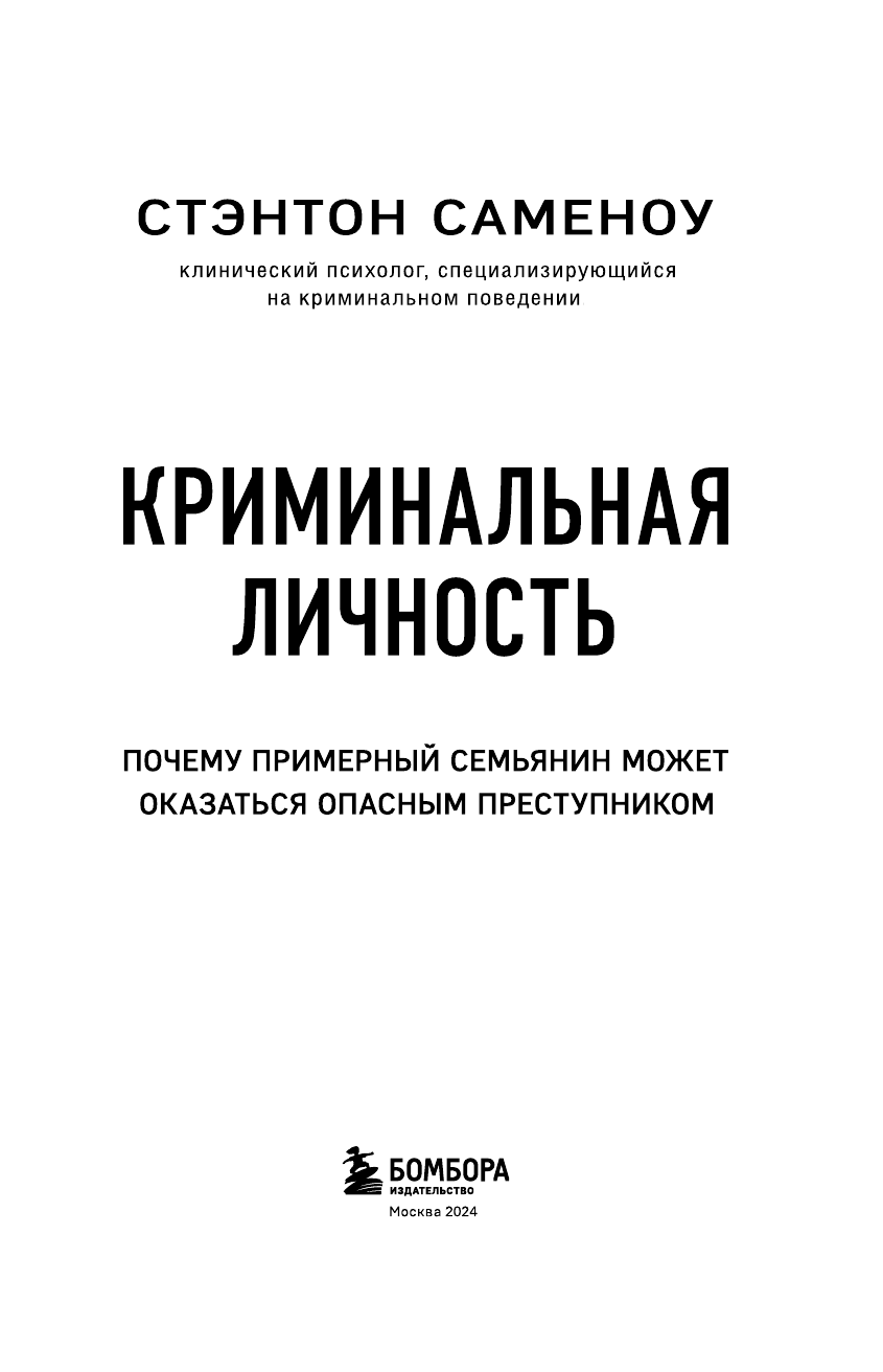 Криминальная личность. Почему примерный семьянин может оказаться опасным преступником (Стэнтон Саменоу); Эксмо, БОМБОРА, 2024