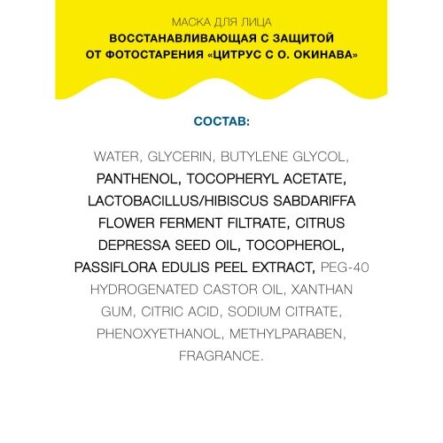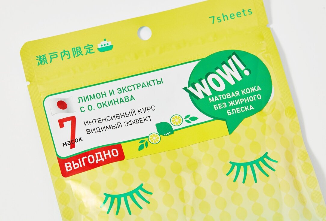 7 Тканевых масок для ежедневного использования. Содержат низкомолекулярную гиалуроновую кислоту и экстракты растений, произрастающих в Японской префектуре Сетоучи- Лимона, Актинидии и Клена Планевидного. Здоровая матовая кожа. Активные ингредиенты: Экстракт Лимона контролирует выделение кожного жира и способствует обновлению эпидермиса, в результате чего выравнивается тон, кожа становится гладкой и ровной. Экстракт Клена Планевидного способствует выработке коллагена и церамидов, которые улучшают защитные функции кожи и повышают её упругость. Экстракт плодов Актинидии сильный природный антиоксидант , который стимулирует восстановление кожи. Низкомолекулярная гиалуроновая кислота активно увлажняет и удерживает влагу в коже. Для достижения максимального эффекта используйте маски ежедневно!