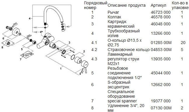 | Дополнительное оснащение | S-образные эксцентрики, аэратор |