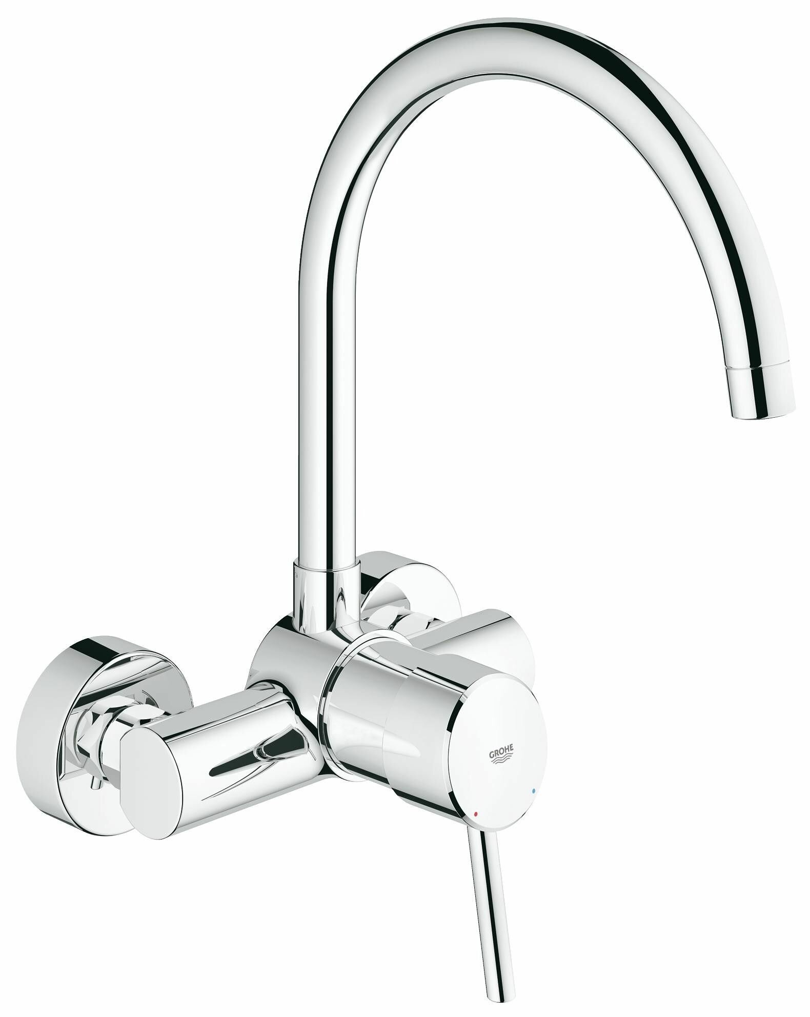 В коллекции Concetto стильный минималистичный дизайн объединен с превосходной эргономикой, что отражает главные принципы направления Cosmopolitan. Смеситель с конструкцией из нескольких цилиндрических форм и изогнутым высоким либо прямым средним изливом элегантно возвышается над рабочей поверхностью. Его строгая красота подчеркивается ярким блеском хромированного покрытия GROHE StarLight®, отталкивающего грязь и устойчивого к истиранию.