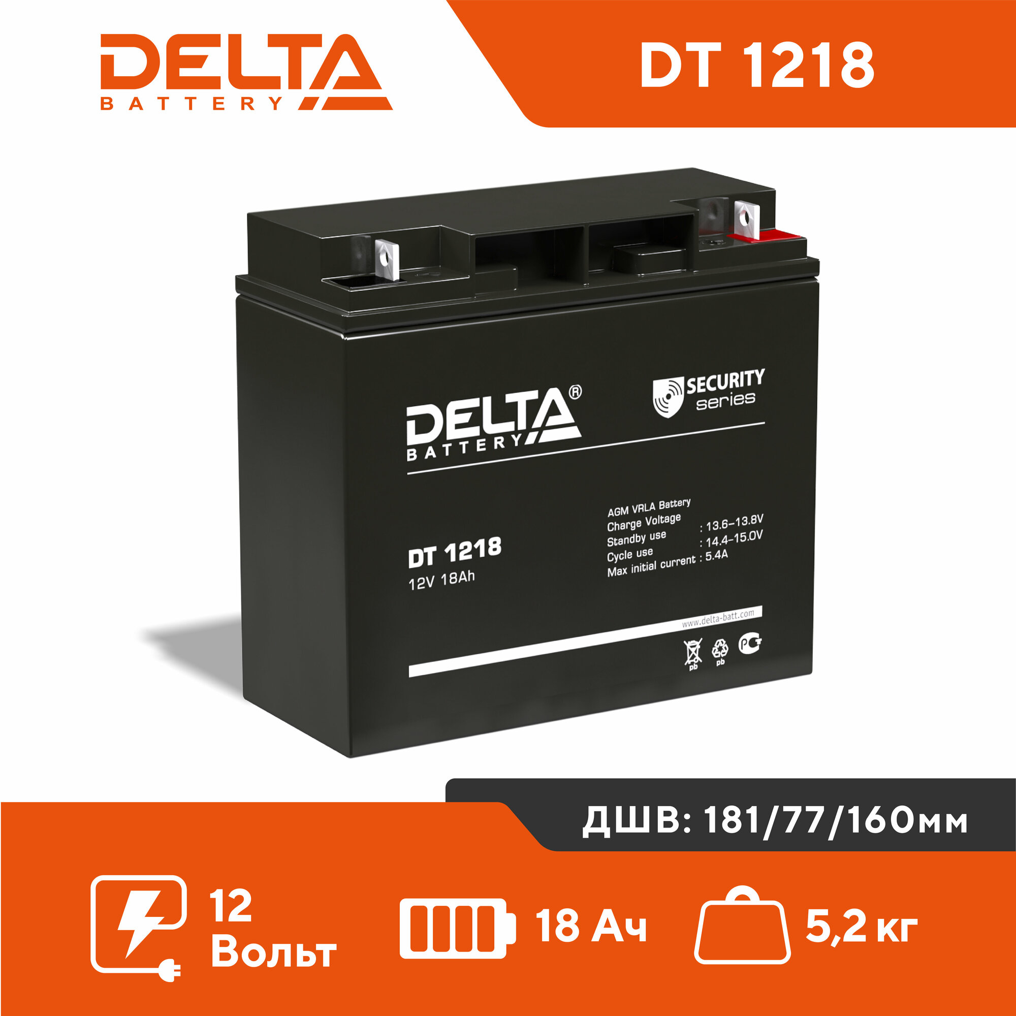 Аккумуляторная батарея DELTA Battery DT 1218 12В 18 А·ч