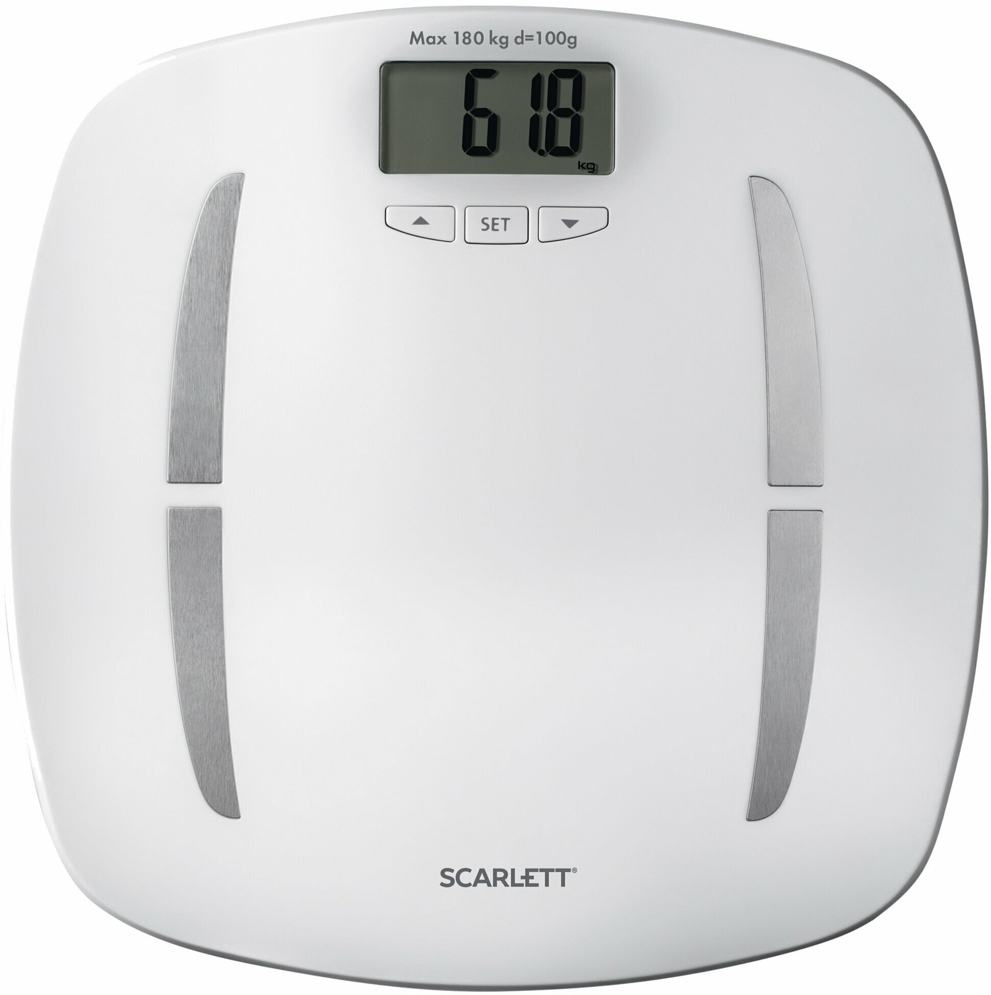 Напольные весы Scarlett – диагностическое устройство, способное измерять соотношение мышечной, костной и жировой ткани, а также содержание воды в организме. Его платформа изготовлена из прочного пластика, выдерживающего нагрузки до 180 килограммов. Блок памяти Устройство позволяет всем членам семьи следить за физическим развитием. Оно может запоминать показатели 12 пользователей. Малая погрешность Весы снабжены современными датчиками с повышенной чувствительностью.