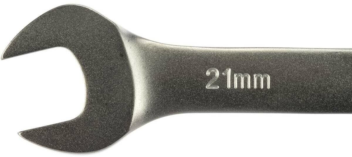 Ключи изготовлены из высококачественной хром-ванадиевой стали. Тело ключа изготовлено методом горячей ковки, что придаёт ему высокую прочность и долговечность. Финишное прочное хромированное покрытие защищает ключ от воздействия коррозии, делает его более износостойким и легко очищается от загрязнений. Продуманный профиль накидной части ключа смещает пятно контакта с ребра грани на её поверхность, что предотвращает повреждение болтов и гаек даже при самых высоких нагрузках. Эргономичный профиль рукоятки ключа позволяет развивать большее усилие без риска повреждения кистей рук. Встроенный прочный трещоточный механизм значительно повышает производительность труда и снижает нагрузки на организм. Материал: cталь CrV50BV30 Твёрдость: 45-47 HRC Покрытие: Матовое хромирование