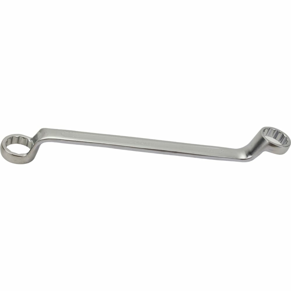 Ключи изготовлены из высококачественной хром-ванадиевой стали. Тело ключа изготовлено методом горячей ковки, что придаёт ему высокую прочность и долговечность. Финишное прочное хромированное покрытие защищает ключ от воздействия коррозии, делает его более износостойким и легко очищается от загрязнений. Продуманный профиль накидной части ключа смещает пятно контакта с ребра грани на её поверхность, что предотвращает повреждение болтов и гаек даже при самых высоких нагрузках. Эргономичный профиль рукоятки ключа позволяет развивать большее усилие без риска повреждения кистей рук. Материал: cталь CrV50BV30 Твёрдость: 45-47 HRC Покрытие: Матовое хромирование