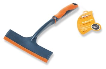 Водосгон данной модели отличается компактными размерами и привлекательным дизайном. Ширина рабочей поверхности изделия составляет 16 см, что позволяет успешно использовать водосгон в бытовых целях и без затруднений хранить в салоне автомобиля. Ручка изделия окрашена в оранжевый цвет, а рабочая часть водосгона и усилитель ручки – в черный.