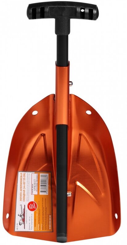 | Прочие особенности и свойства | Лопата алюминиевая складная, которая имеет второе название – Лопата альпинистская. Данное название используется не просто так – лопата очень легкая и в тоже время очень прочная. Благодаря своим компактным размерам, лопата идеально подойдет для хранения в автомобиле, а благодаря повышенной прочности, позволит справиться с залежалым снегом и льдом. Длина в разложенном виде - 65 см Длина в сложенном виде - 44 см Размер ковша - 25 см |